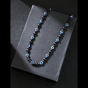 Cute Funny Devil's Eye Leather rope Zinc alloy Beaded Unisex Necklace - Blue