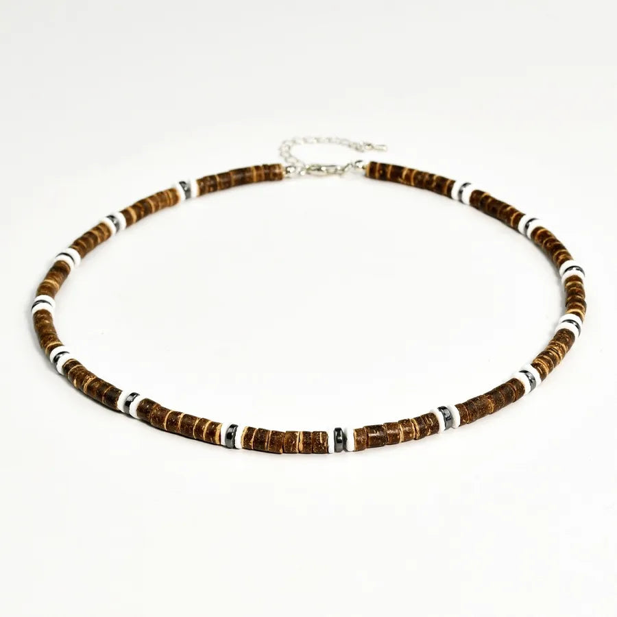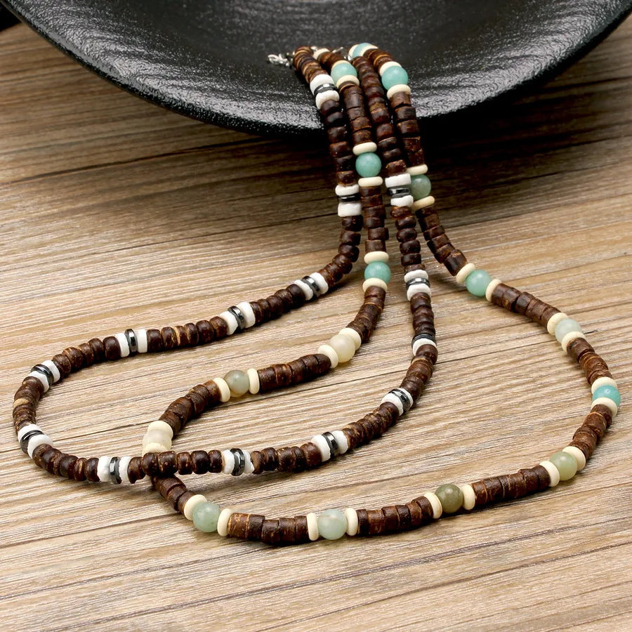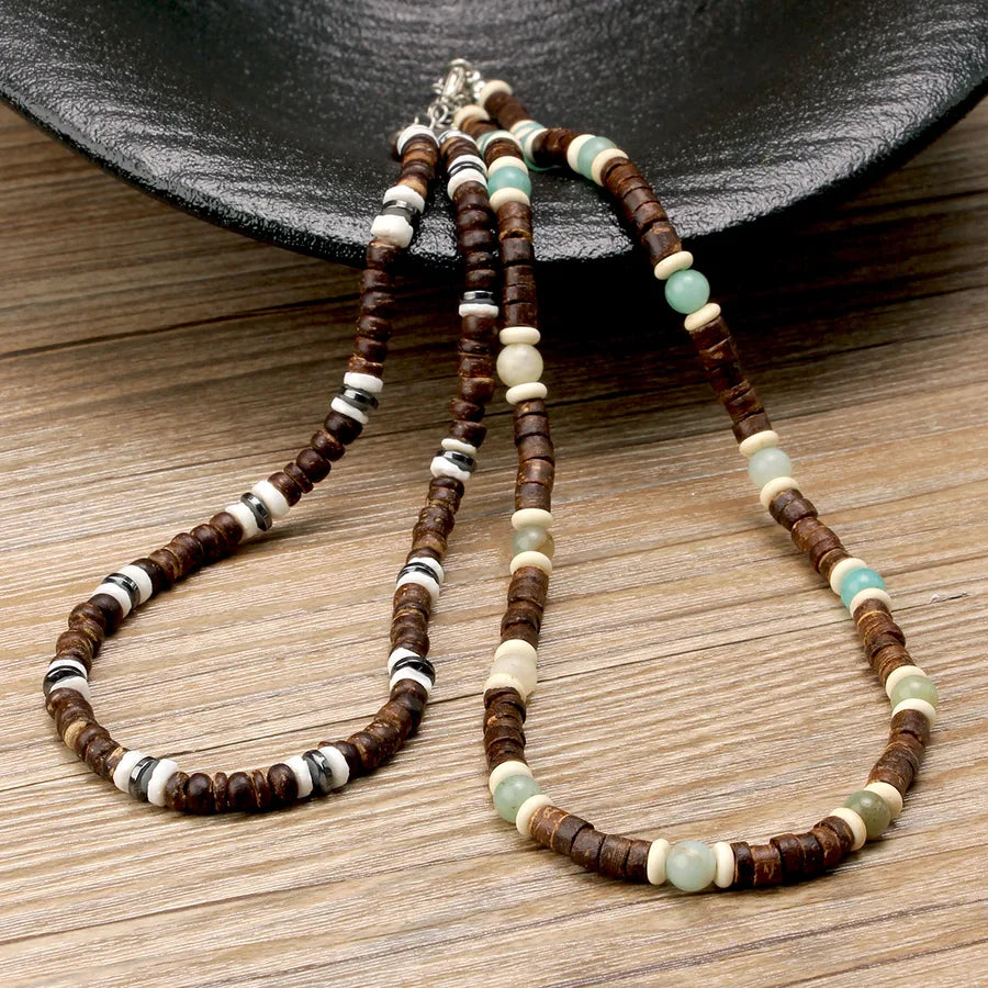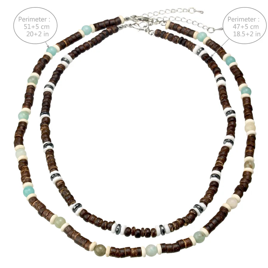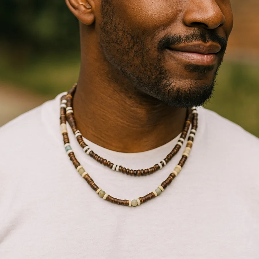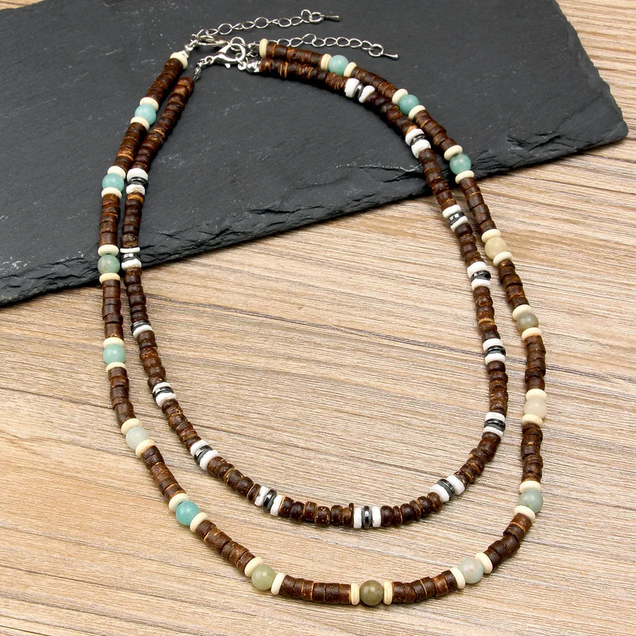 Men's Layered Necklaces Double Layer Necklaces Necklace Natural Stone Texture Coconut Shell Texture Stone Coconut Shell black gallstone Men Beaded Necklaces - 2 Necklaces in Card