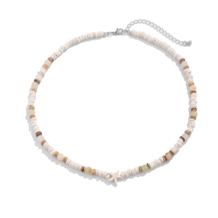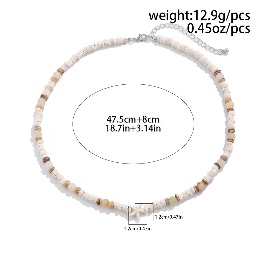 Ornament Men's Summer Coconut Shell Natural Stone Beaded Necklace Niche Hip Hop Versatile Clavicle Chain Men - White K 06431
