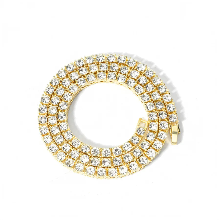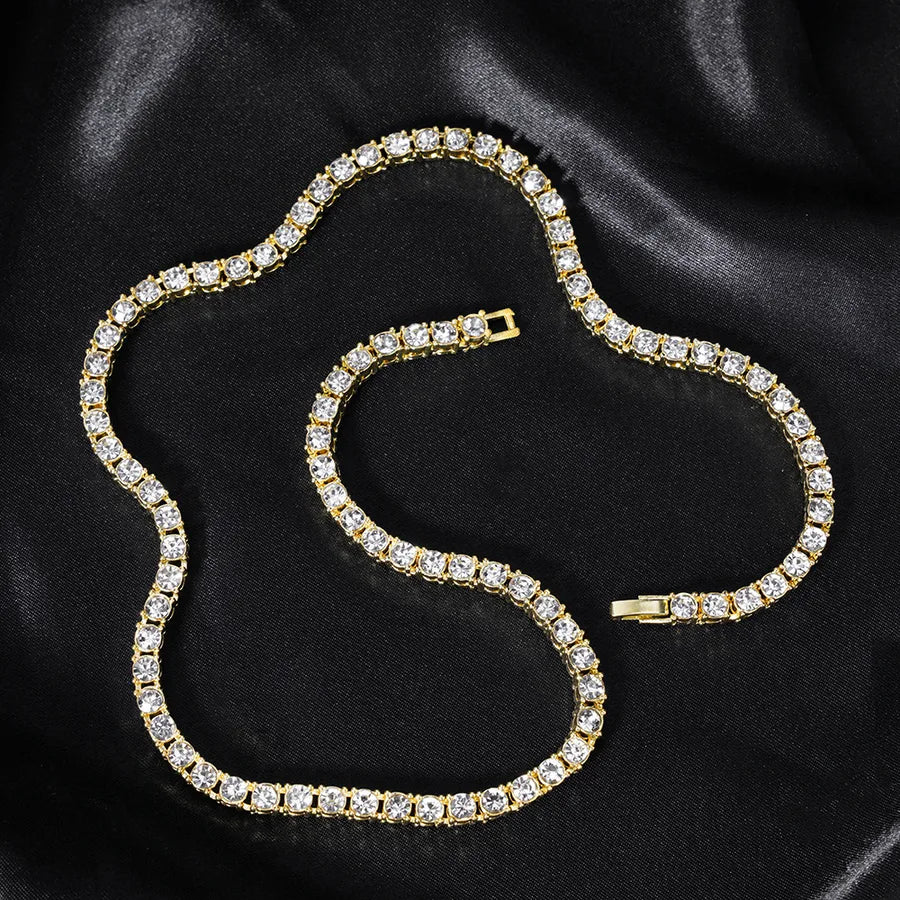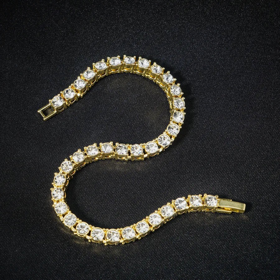 Fashionable Single Row Diamond Tennis Necklace For Men Eco-friendly Zinc Alloy Jewelry Hip Hop Style Quadrilateral Design - Gold/1.3*1.1cm-8inch/20cm-Bracelets