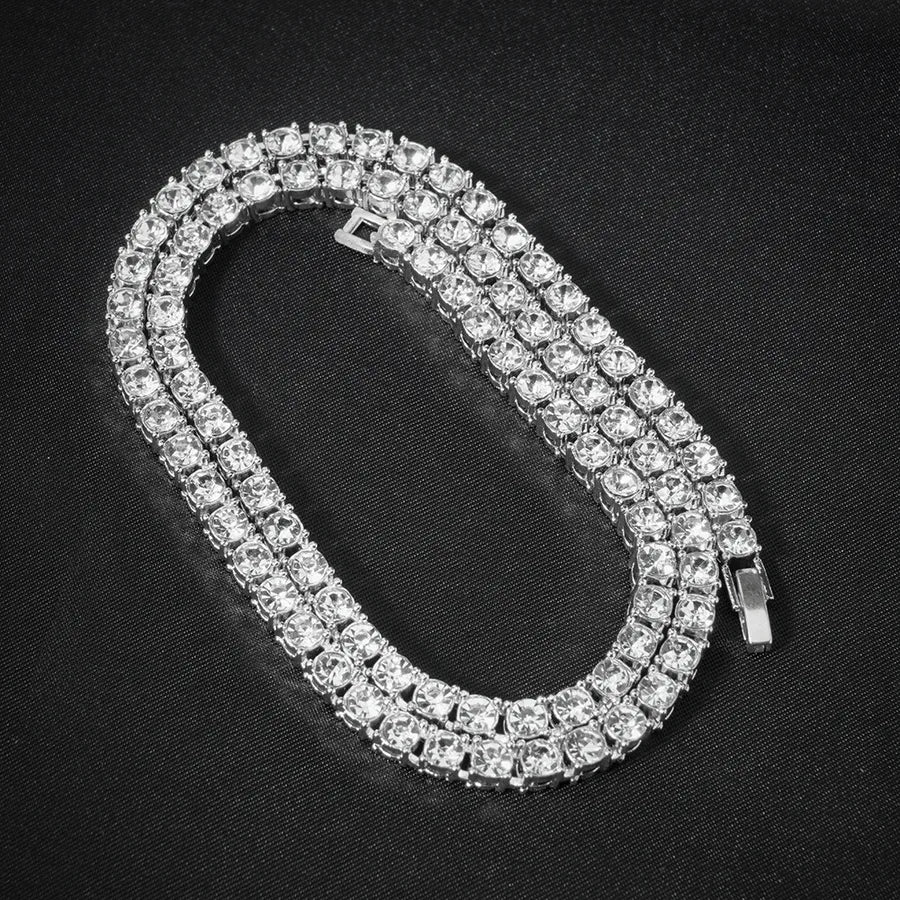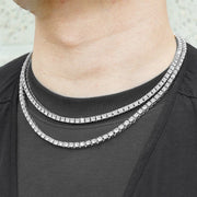 Fashionable Single Row Diamond Tennis Necklace For Men Eco-friendly Zinc Alloy Jewelry Hip Hop Style Quadrilateral Design