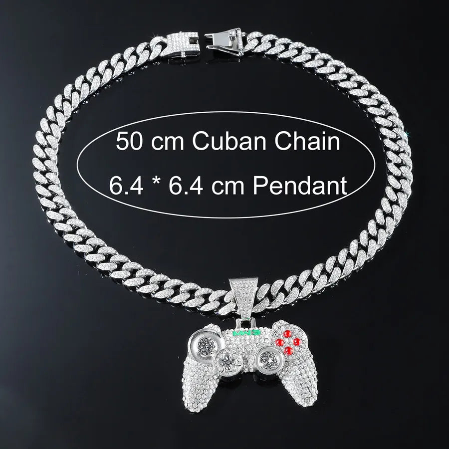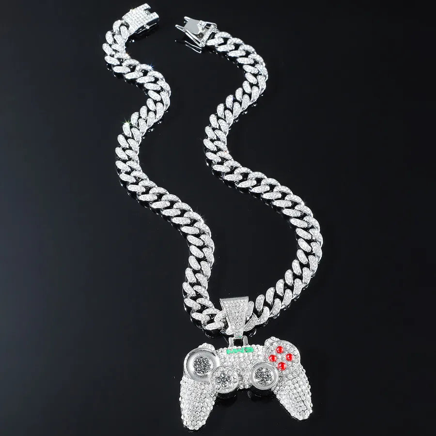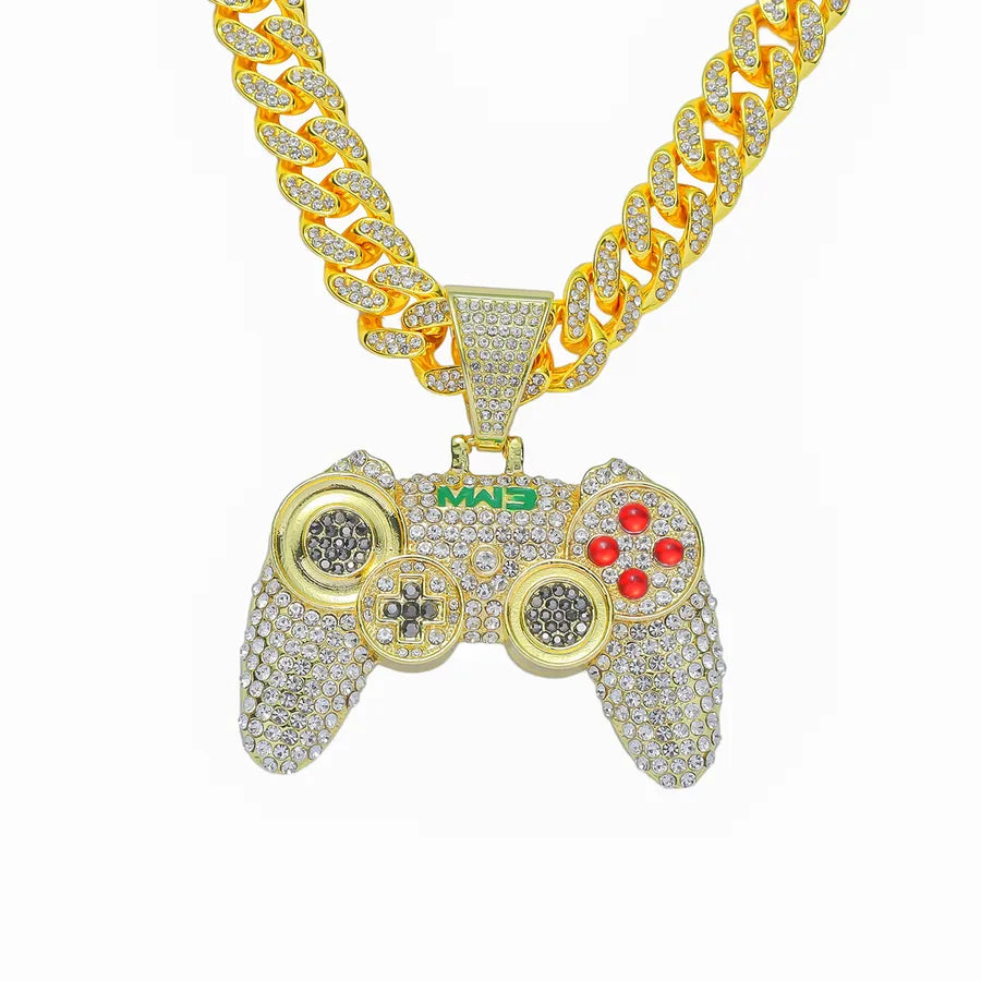 hip-hop game console alloy inlay zircon men's pendant necklace