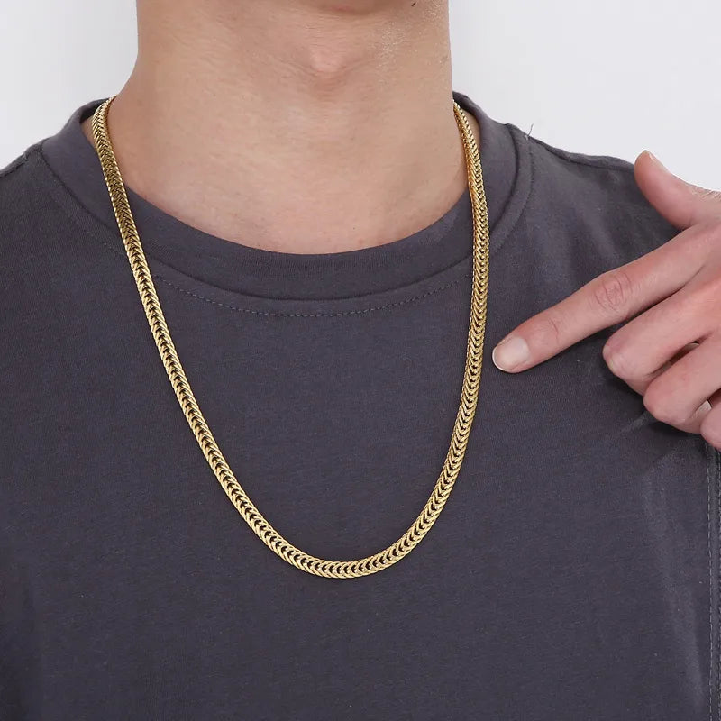 Hip-Hop Punk Solid Color Stainless Steel Plating 18K Gold Plated Men'S Necklace - Gold 650 * 6mm