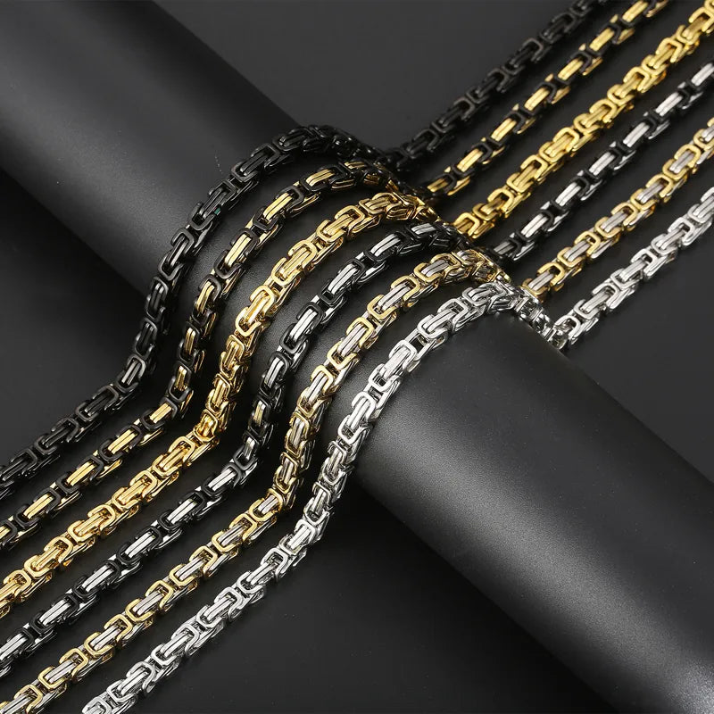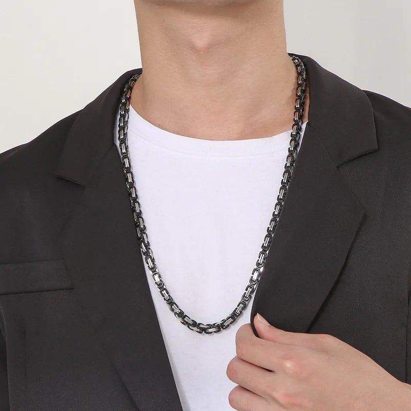 Modern Style Simple Style Solid Color Stainless Steel Plating 18K Gold Plated Men'S Necklace - Steel Color 550 * 6mm