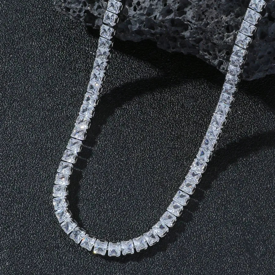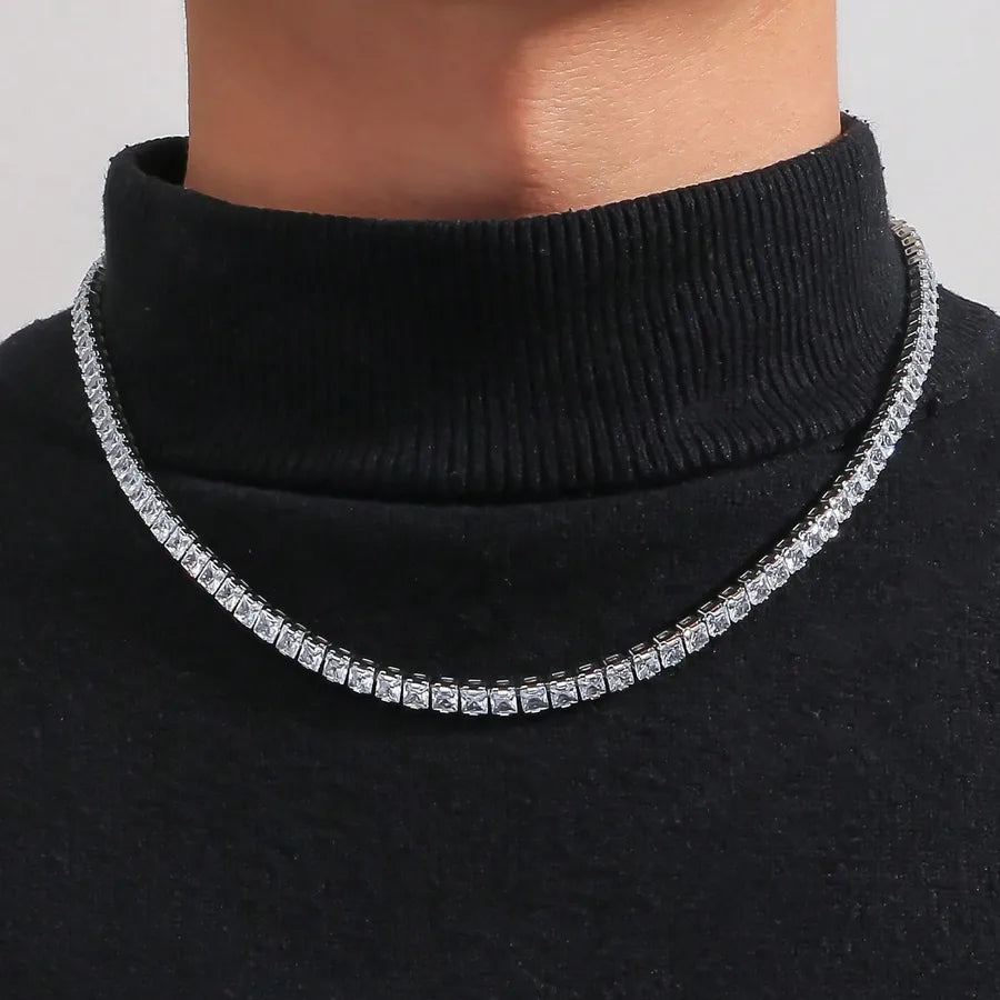 Wholesale Jewelry Hip-Hop Vintage Style Geometric Copper Zircon Inlay Necklace - One Size / Silver