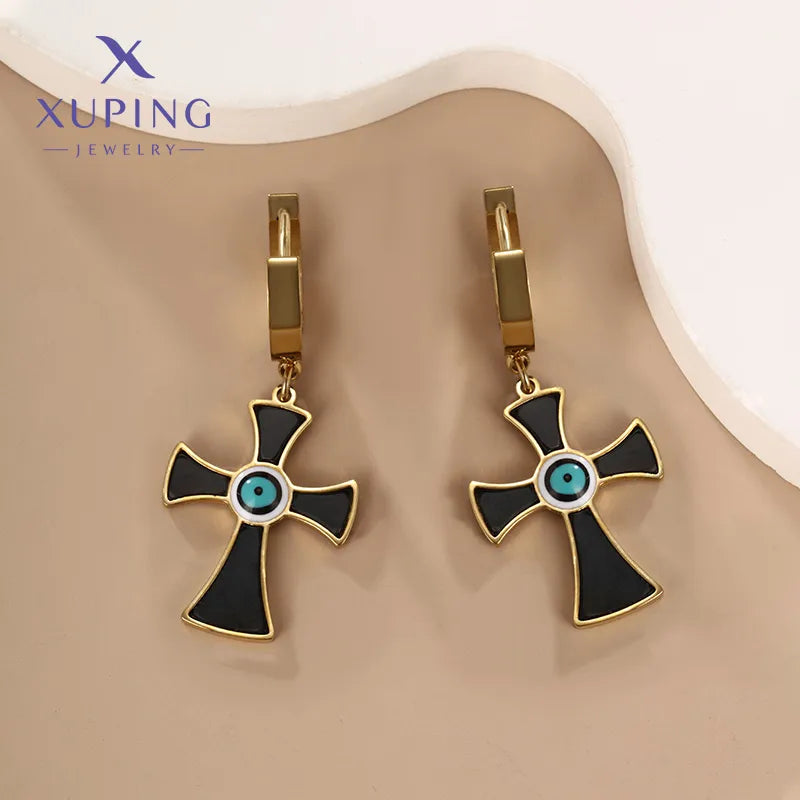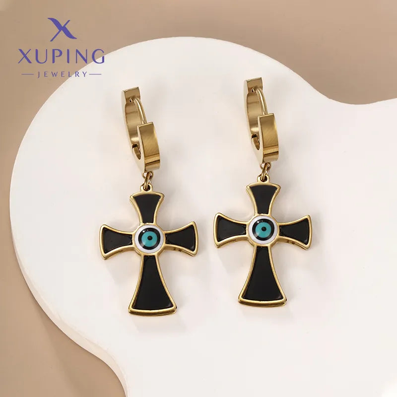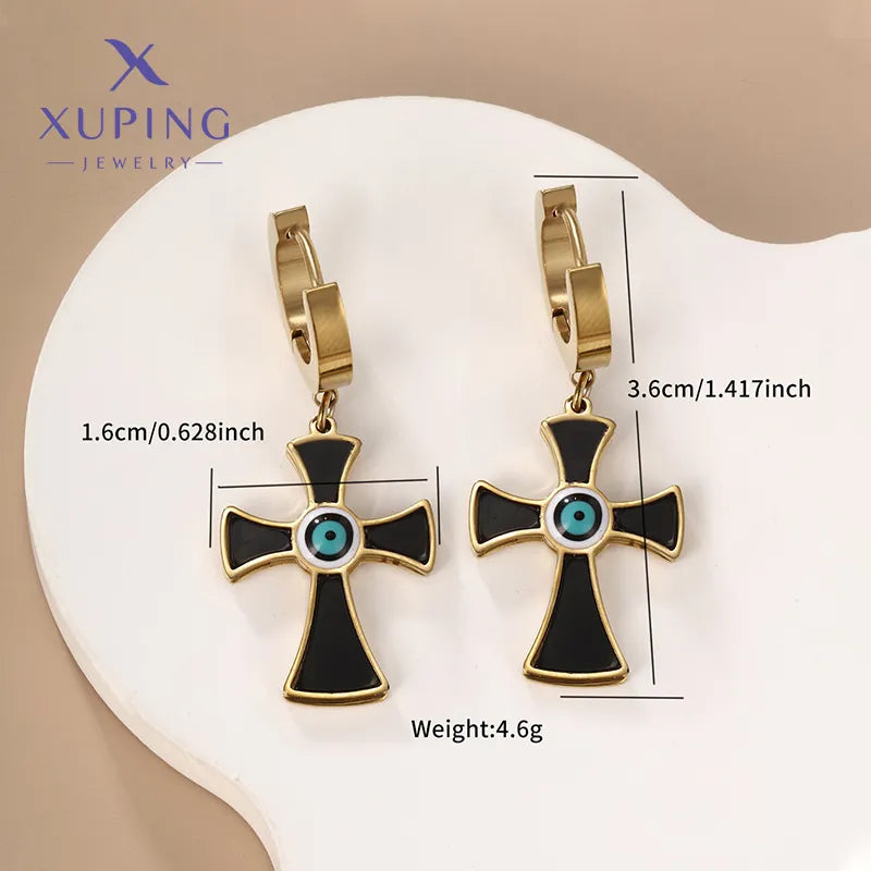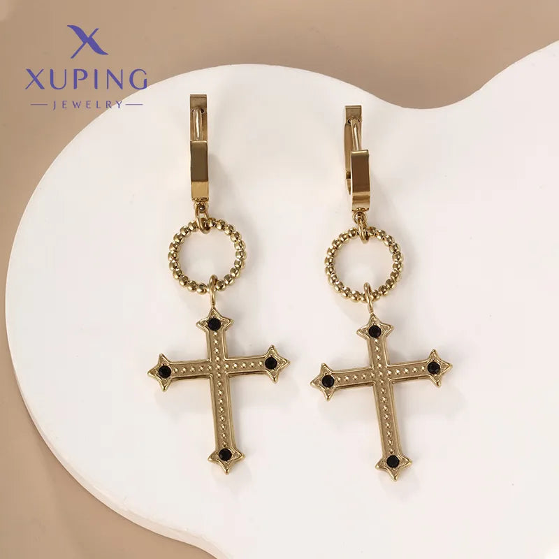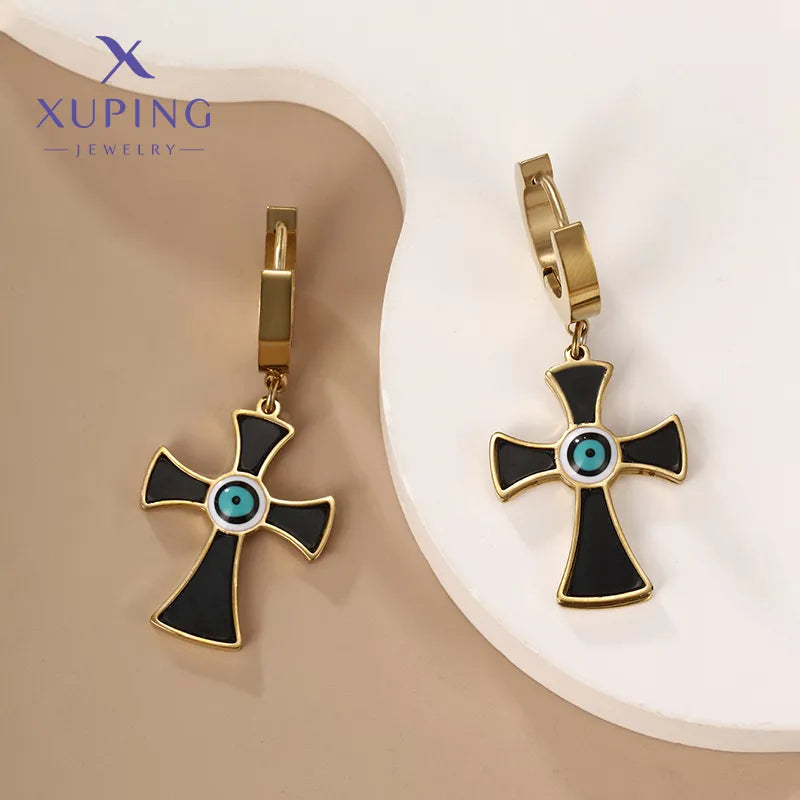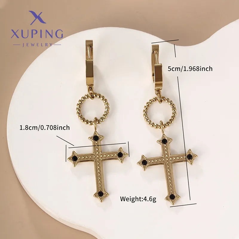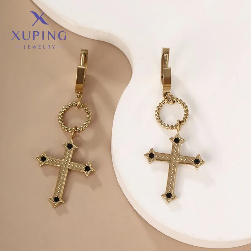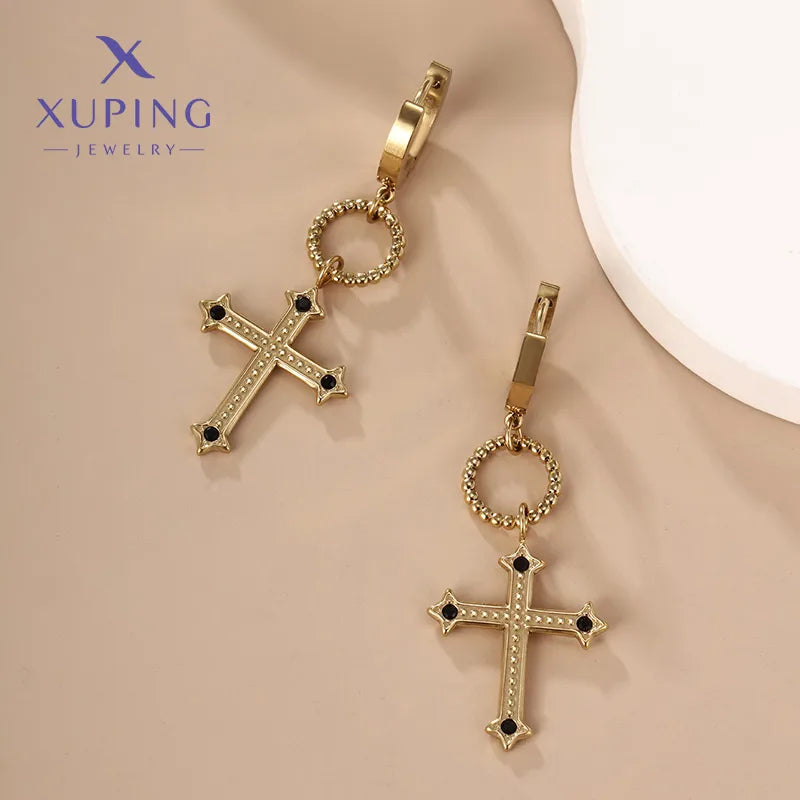 1 Pair Casual XUPING Cross Plating 304 Stainless Steel 18K Gold Plated Drop Earrings - Stainless Steel-A