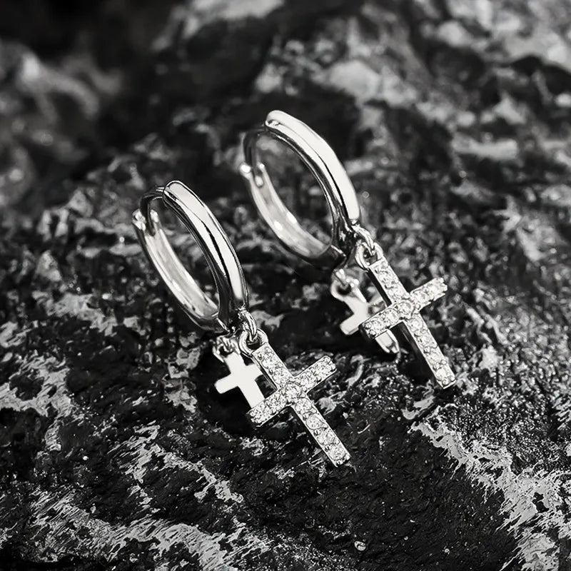 1 Pair Hip-Hop Simple Style Cross Plating Copper Drop Earrings - X575-A (Double Cross Earrings)