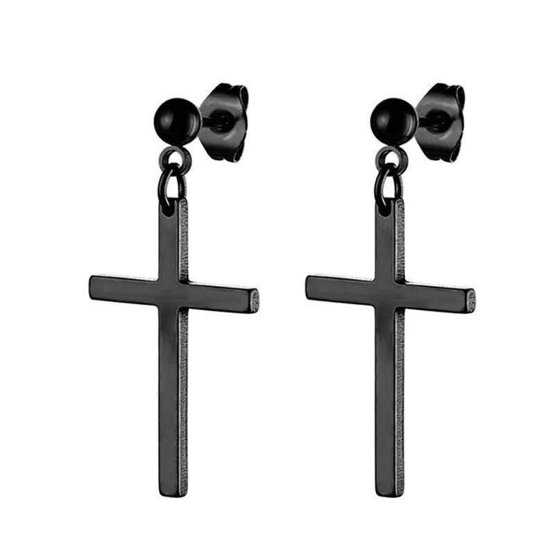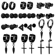 Black Stainless Steel Dumbbell Cross Earring Set 12 Pairs Unisex Geometric Pattern Jewelry Accessories For Men And Women - Black Suit
