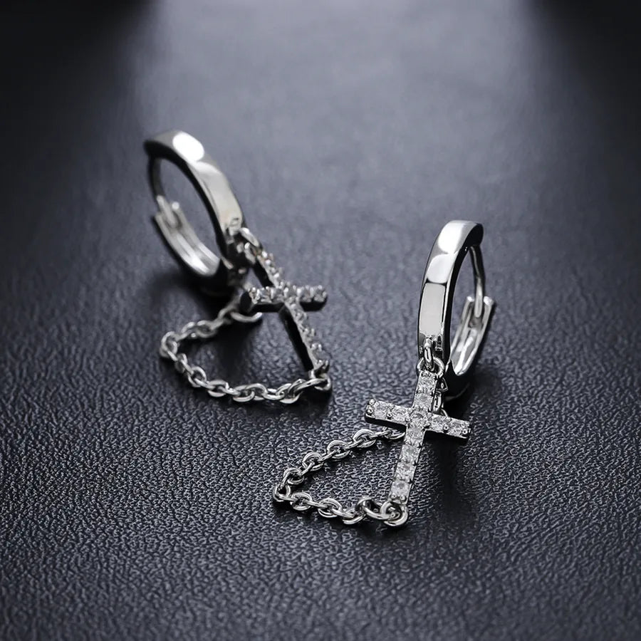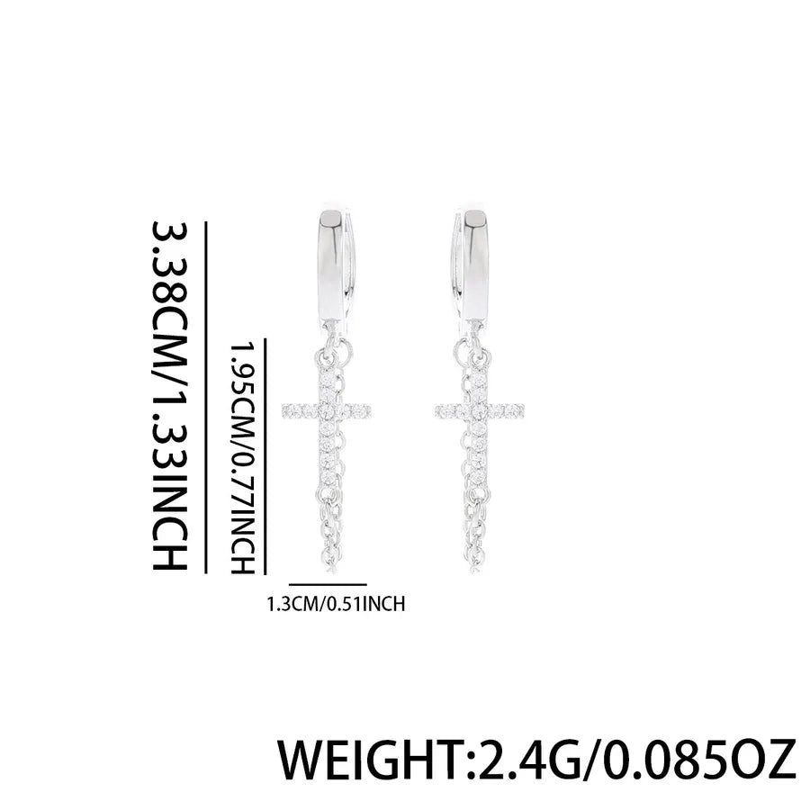 Cross Earrings Unisex Diamond Embedded Tassel High-End Sensation Hip Hop Women's Minimalist Summer Accessory Jewelry