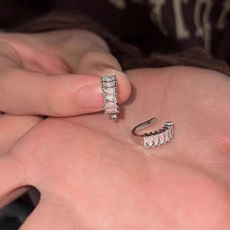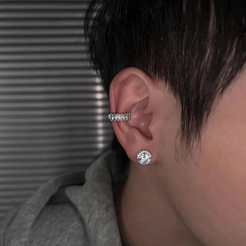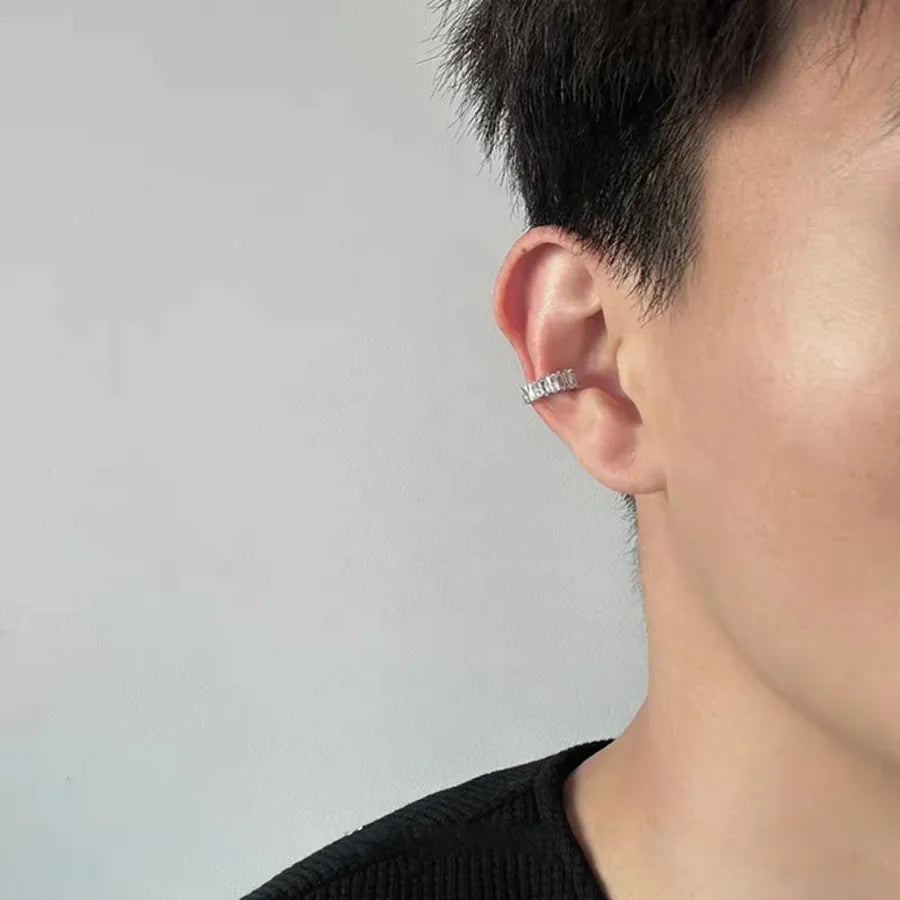 Diamond Embedded Zircon Ear Cuff No Piercing Required Men's Stylish Personality Fashion Geometric Pattern Copper Earrings - One Square Diamond Ear Clip