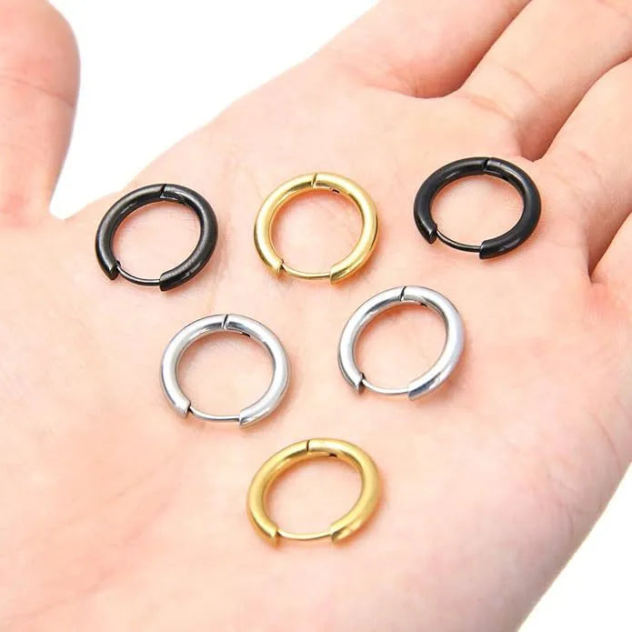Elegant Small 304 Stainless Steel Men's Earrings Round Circle Studs Fashionable Personality Jewelry Ear Decorations - Earrings Steel Color 2.5*8
