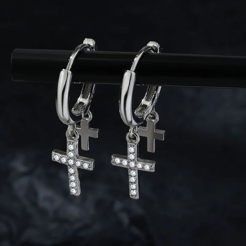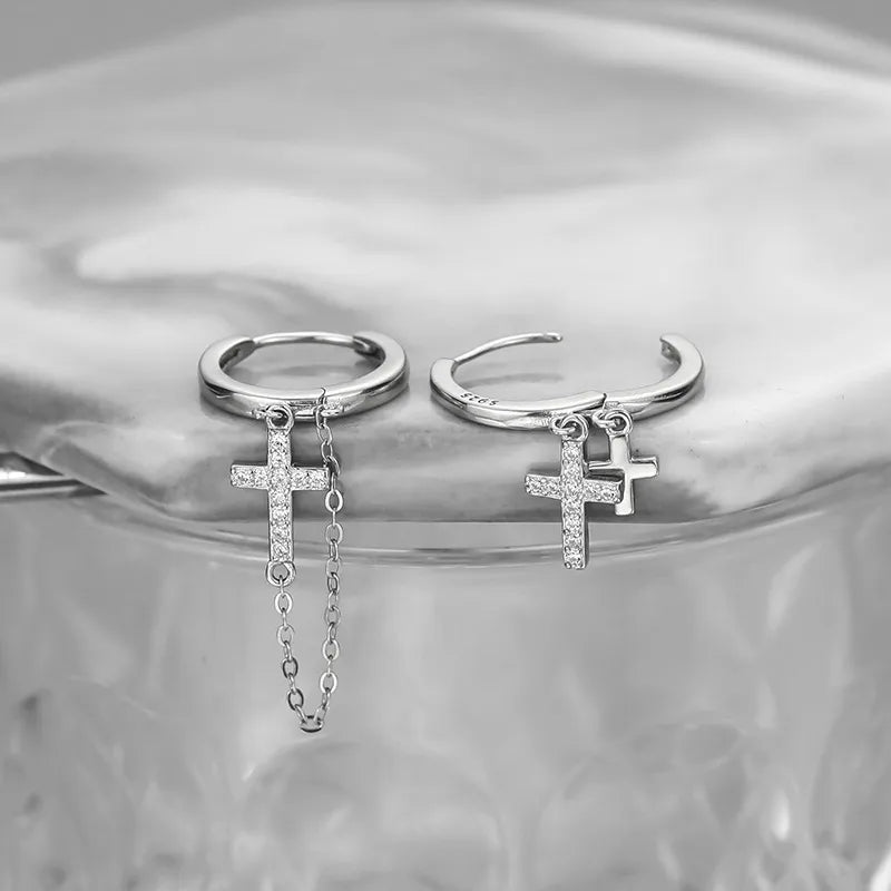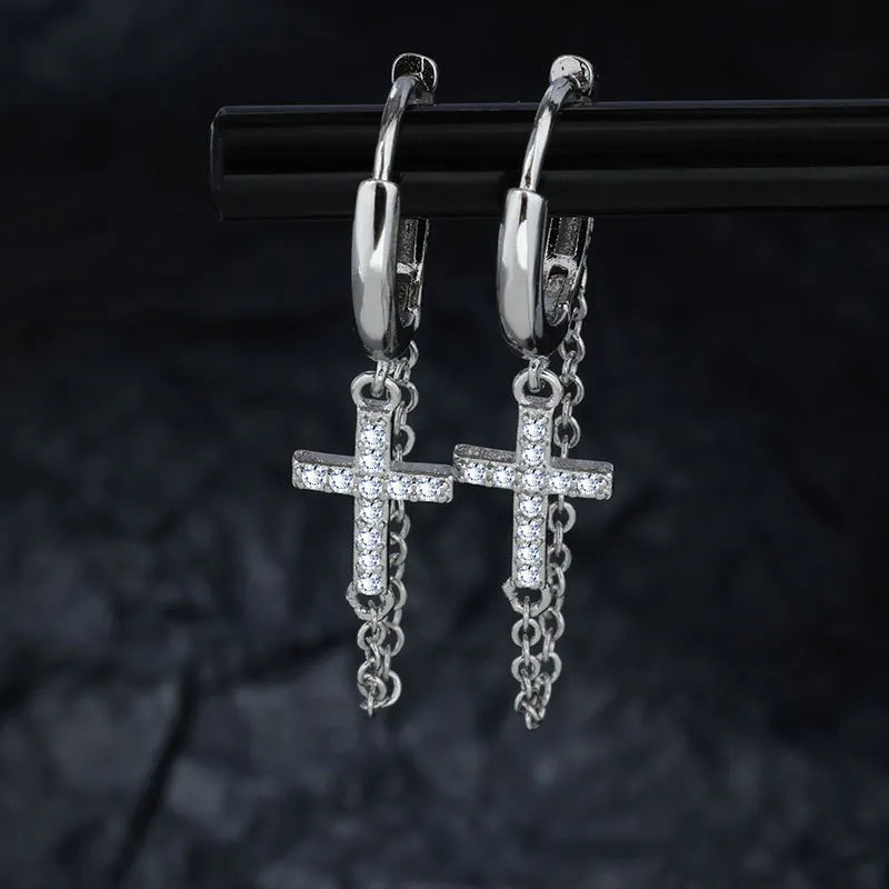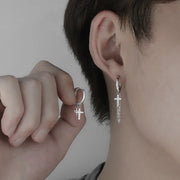 Fashionable Asymmetric Cross Tassel Earrings For Men Hip Hop Minimalist Style Trendy Geometric Pattern Copper Ear Jewelry - ER740 Asymmetric Pair