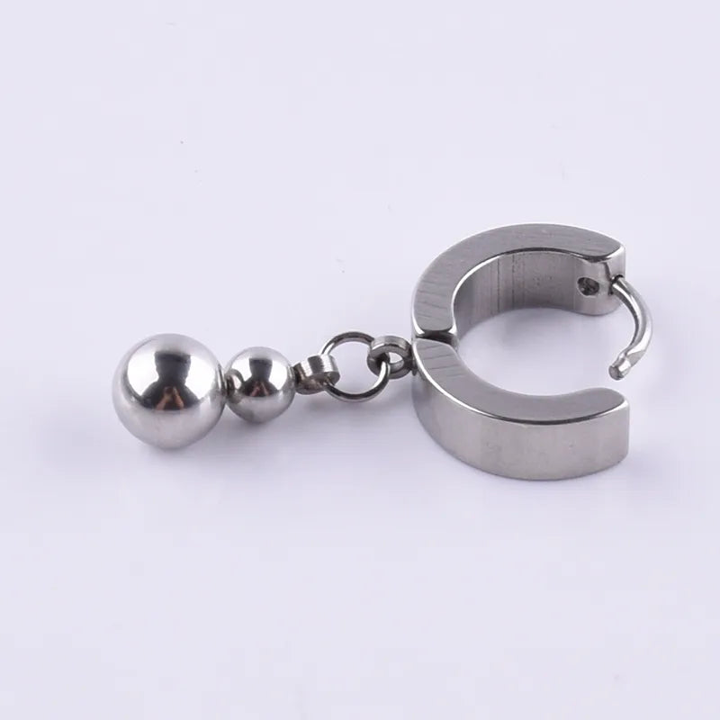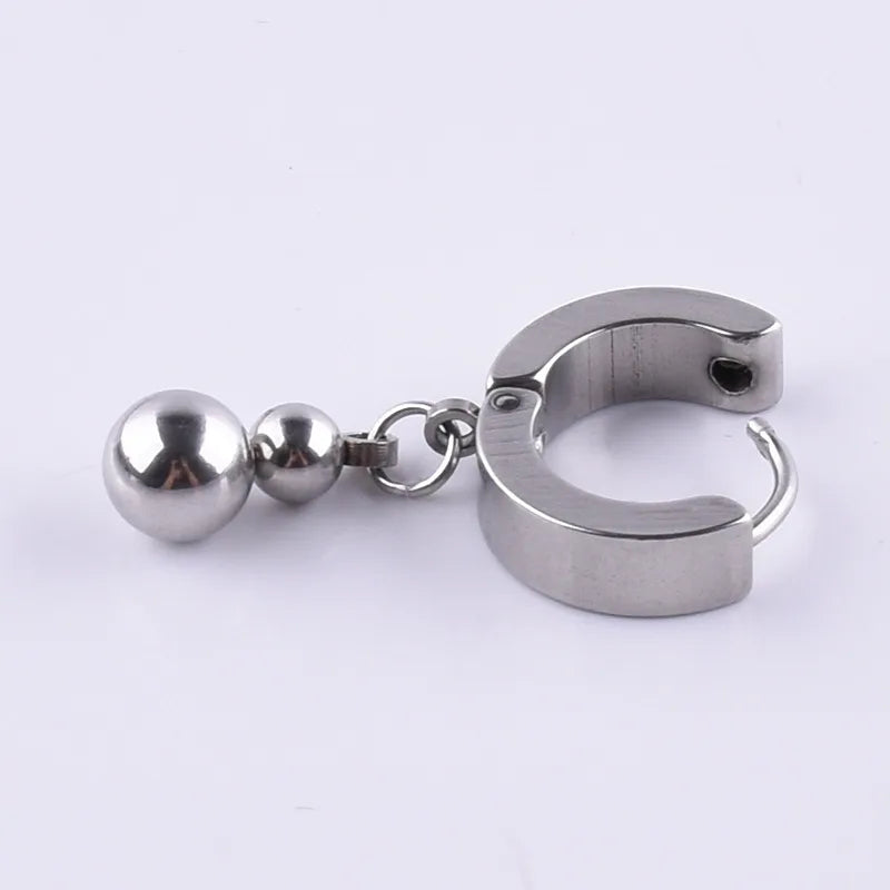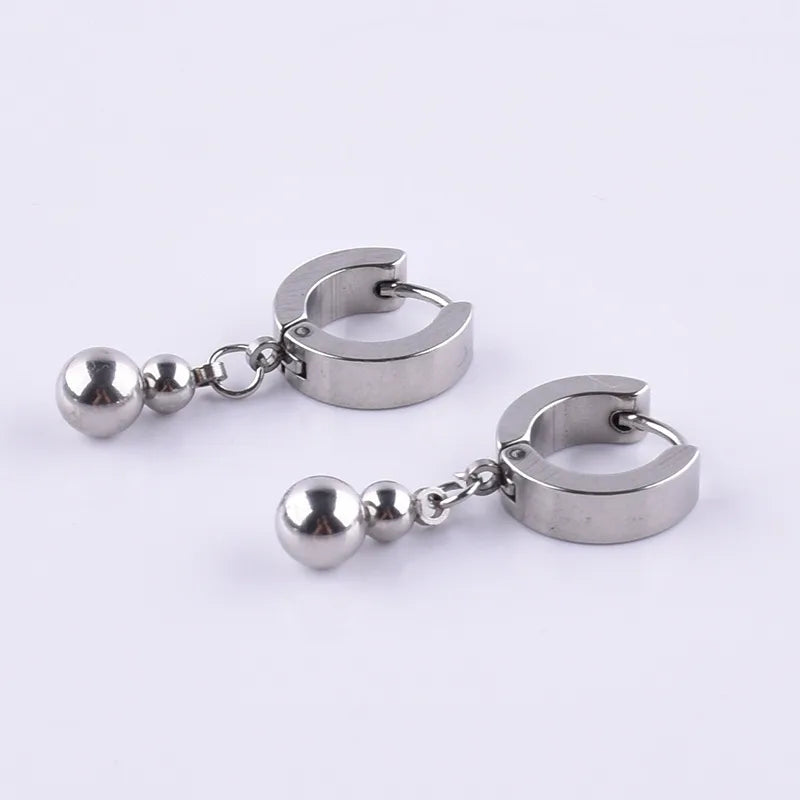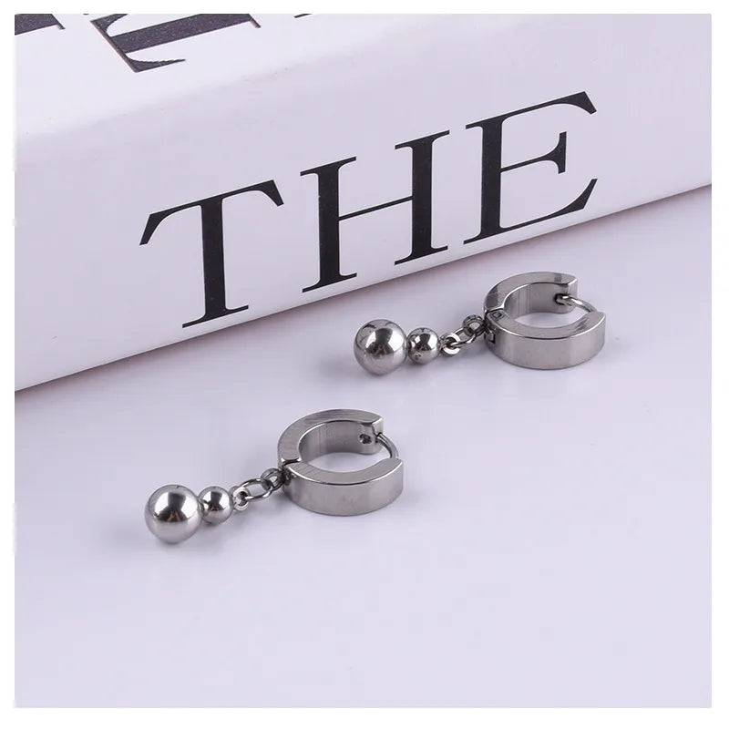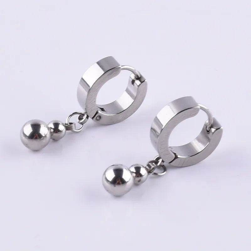 Fashionable Minimalist Stainless Steel Gourd Earrings Short Style Pendant Earrings Niche Hip Hop Gourd Ear Jewelry - Steel Color / Big Ball 6mm Small Ball 4mm