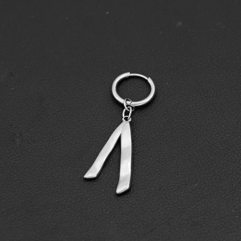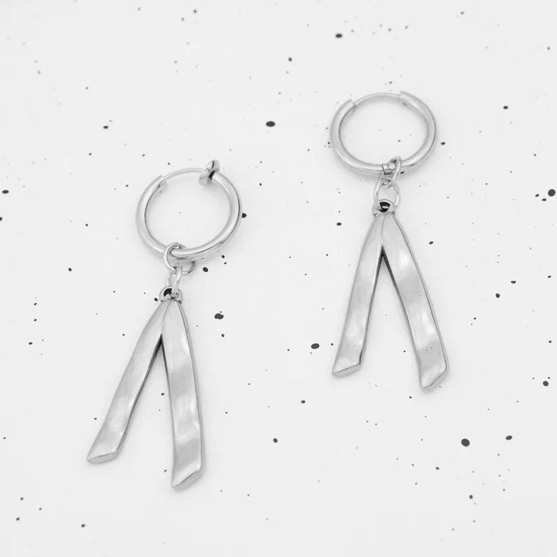 Fashionable Stainless Steel Pendant Earrings Geometric Wave Design Irregular V-Shape Couple Studs Polished Unisex Hoops - 6203V Word Ear Ring Pieces