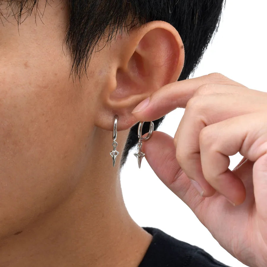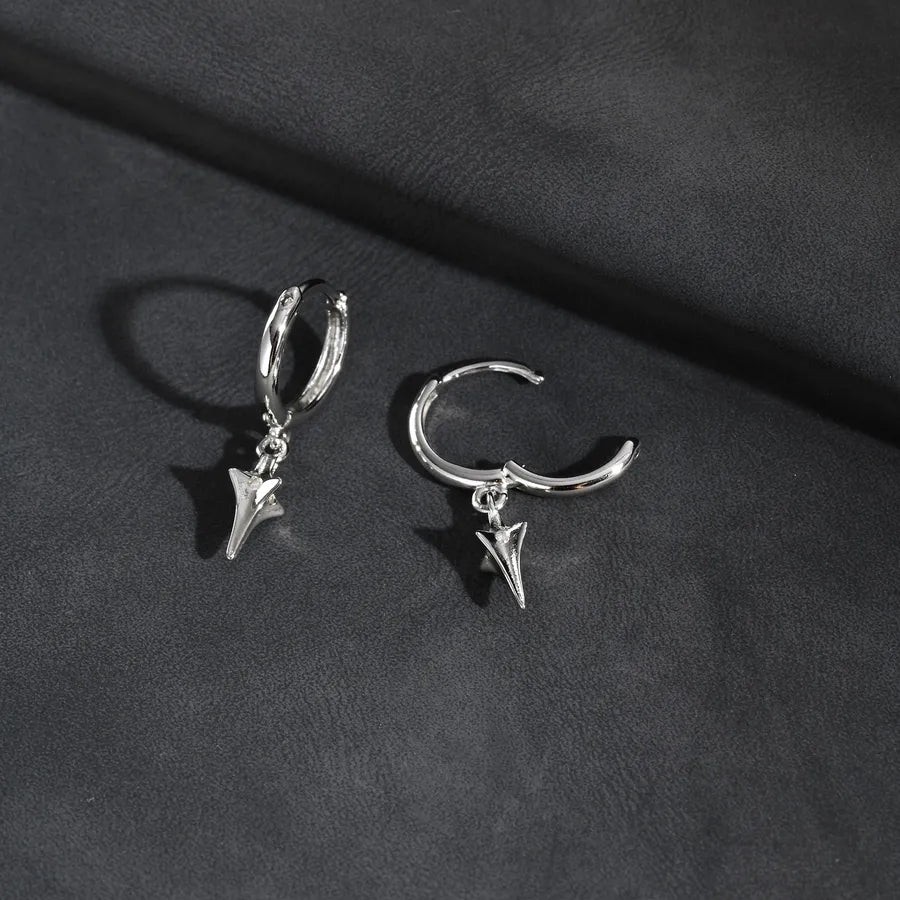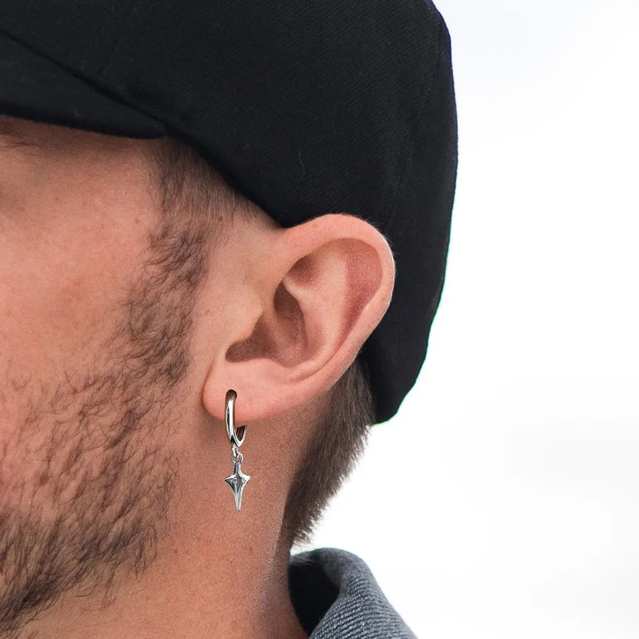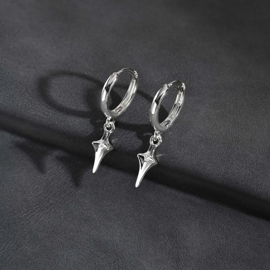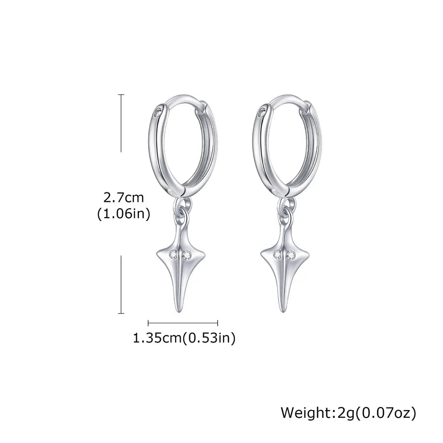 Gothic Style Copper Material Men's Earrings With Embedded Zirconia Stars In White Gold Color Versatile All-Season Jewelry - Platinum / A Piece