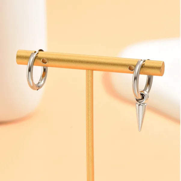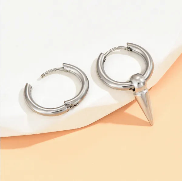hip-hop geometric stainless steel asymmetrical drop earrings 1 pair - Silver / 2.8*0.4cm-1.6cm