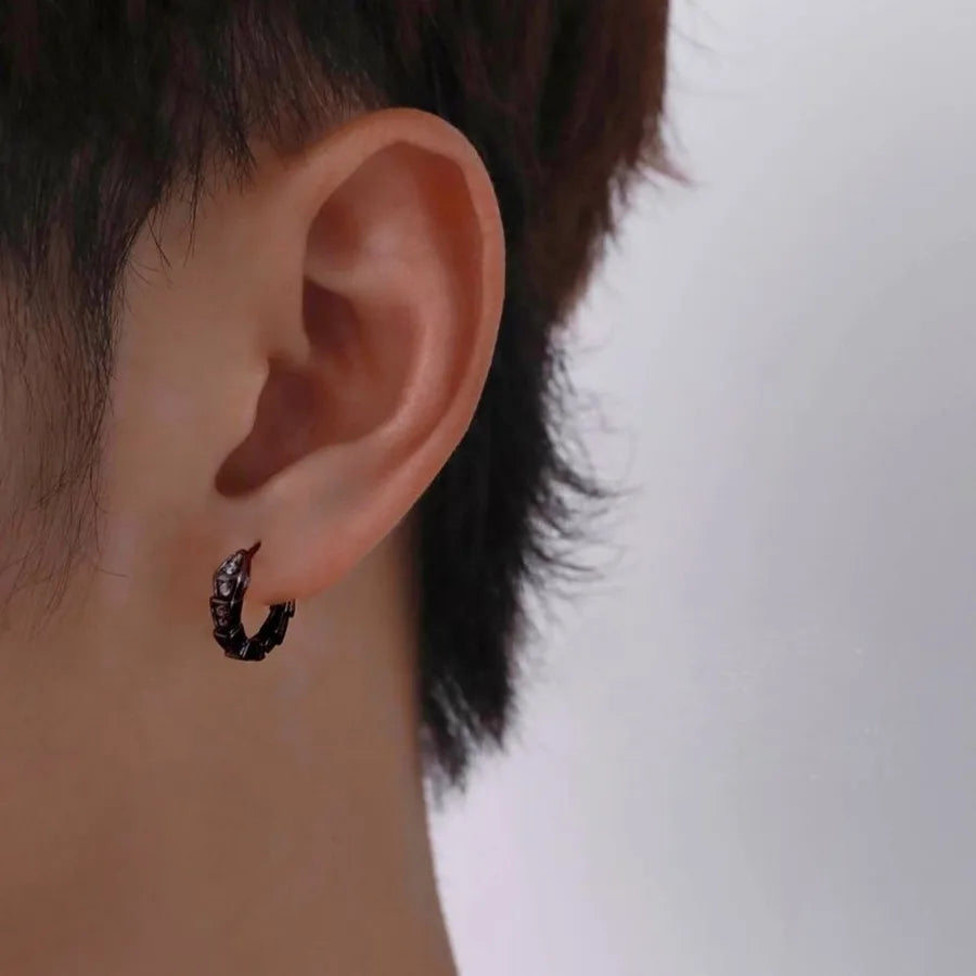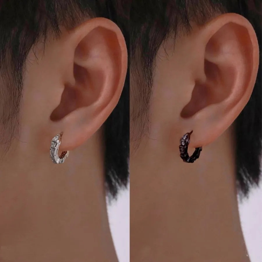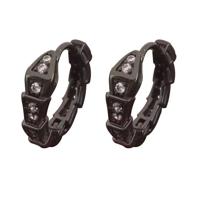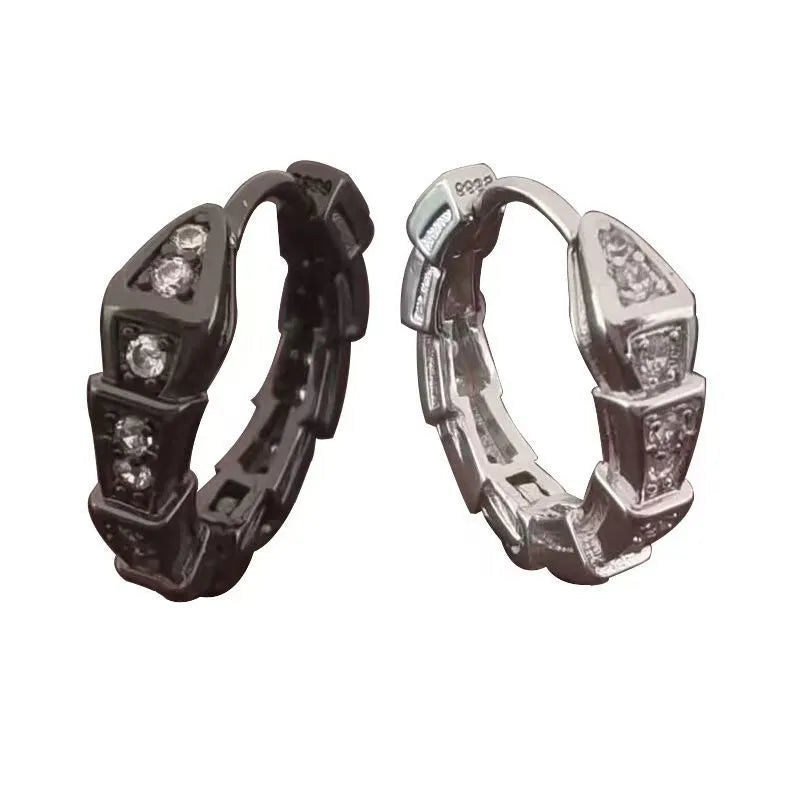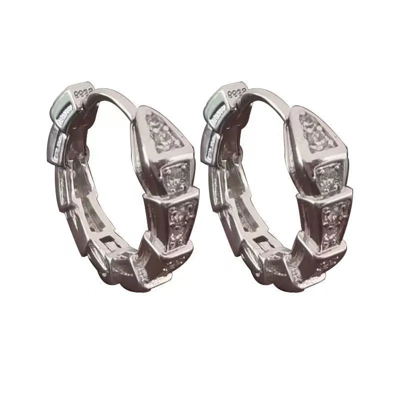 Luxury Snake Shaped Diamond Embedded Earrings Unisex Fashionable Animal Zodiac Pattern Copper Material Ins Style Men Women - White a Pair