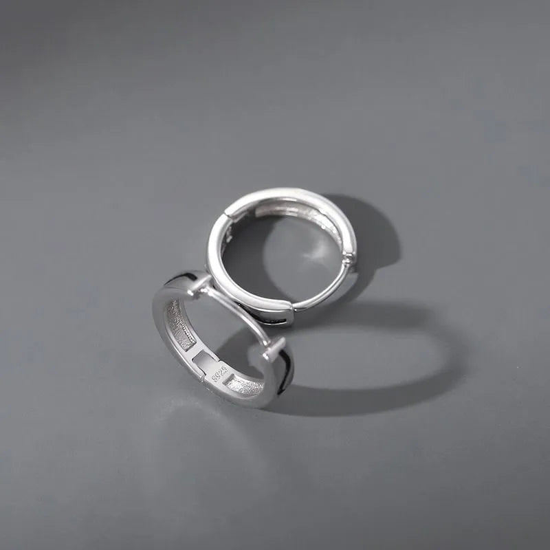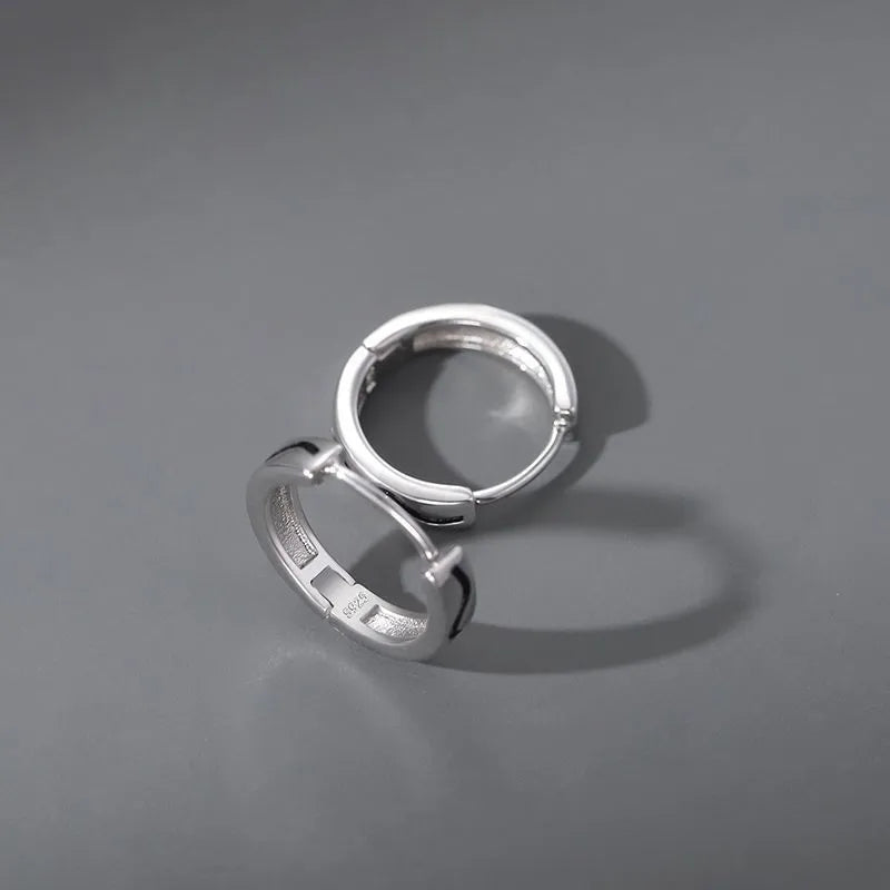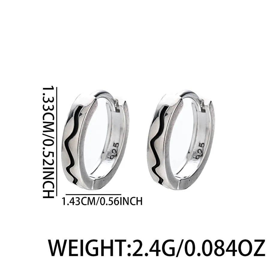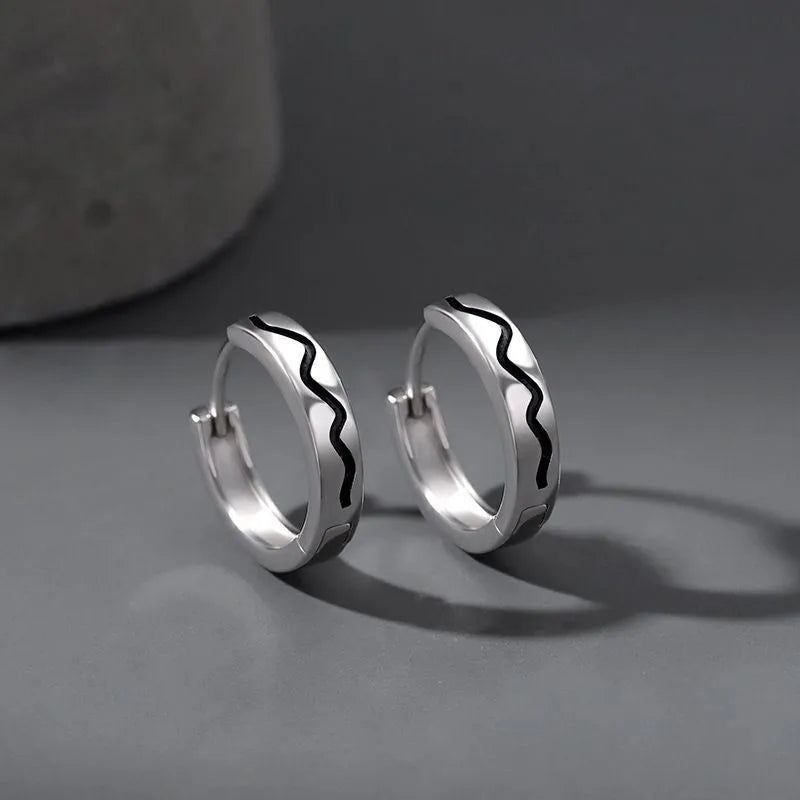 Men's Black White Stripes Geometric Design Fashionable Personality Hoops Earrings Simple Style Copper Material Trendy Men's Jewelry - X128-A Silver