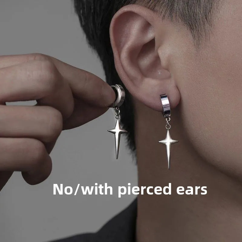 Men's Fashionable Minimalist Earrings Design Sensation Without Piercing Hole Simple Elegance Copper Material Geometric Pattern - X123-A (with a Pair of Pierced Ears)