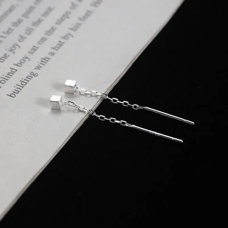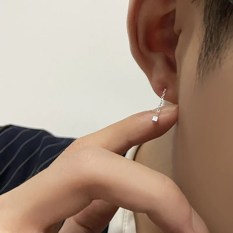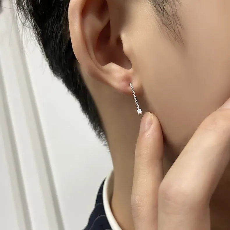 New Block Tassel Earrings Men's Personality Single Cold Style Simple Ear Wire Versatile American Ear Jewelry - Square Pendant Earrings