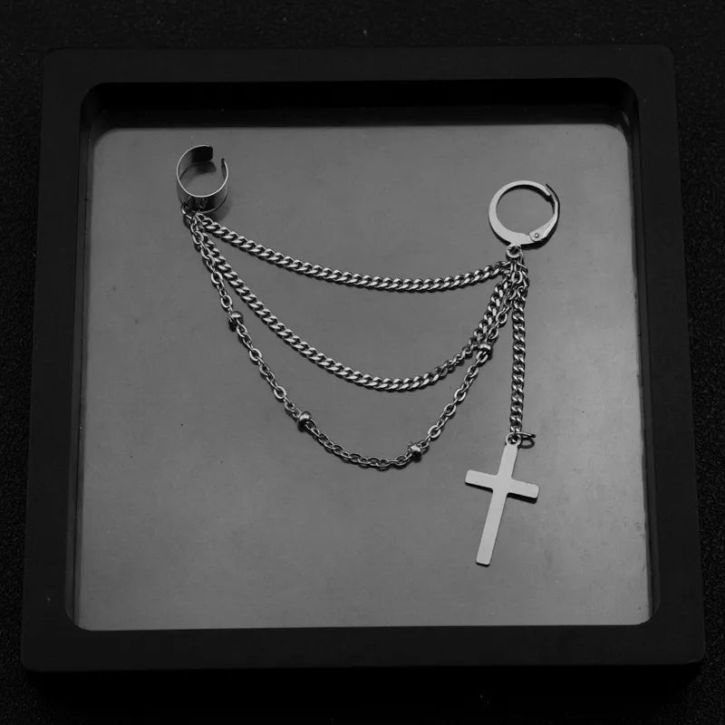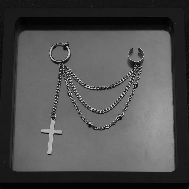 New Stylish Stainless Steel Ear Cuff Studs Unisex Geometric Pattern Skull Pumpkin Design Fashion Jewelry Ear Rings Accessories - 128 Awl One Circle One Clip One