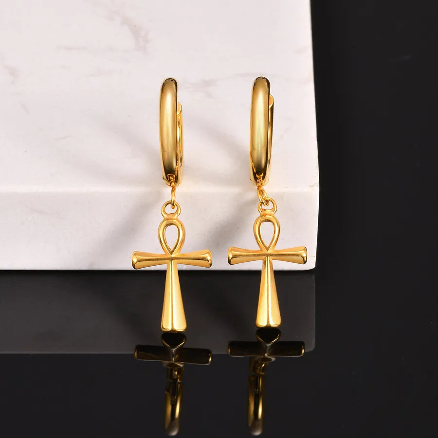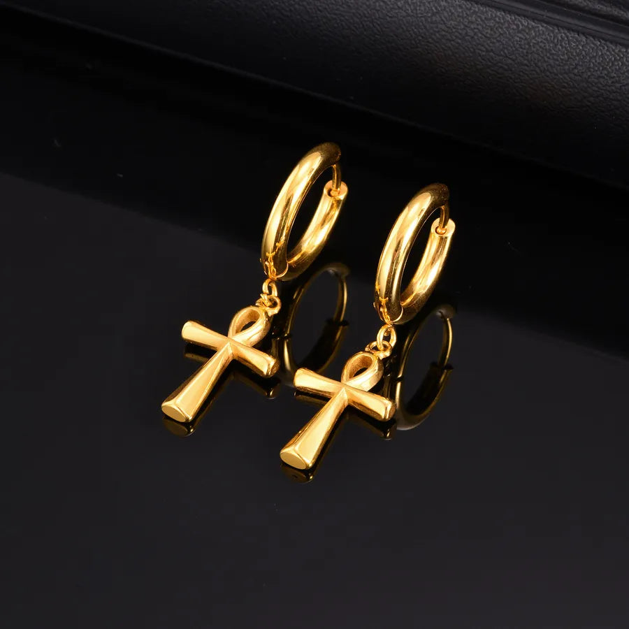 Retro Classic Style Cross 201 Stainless Steel Earrings