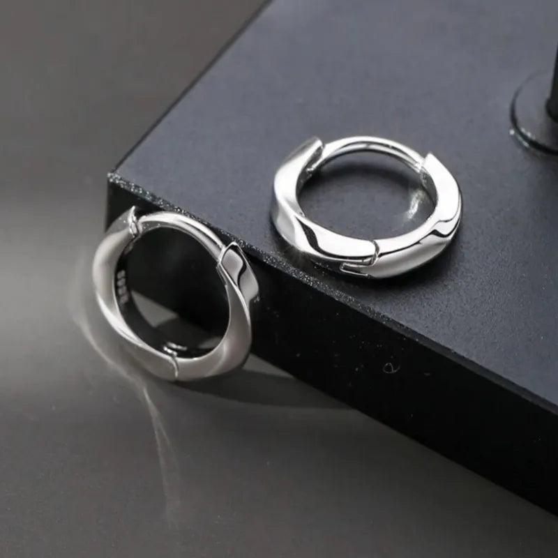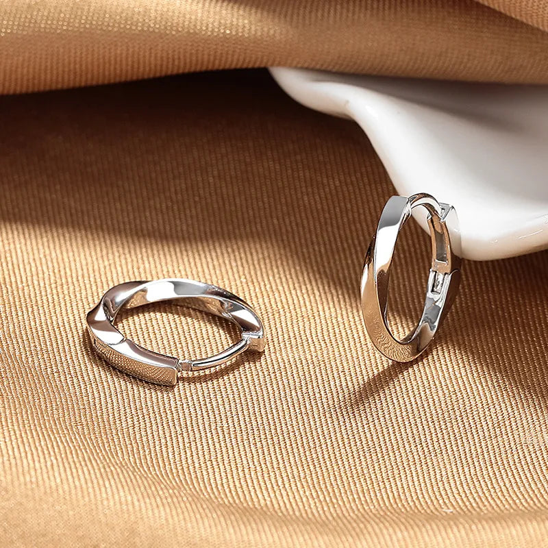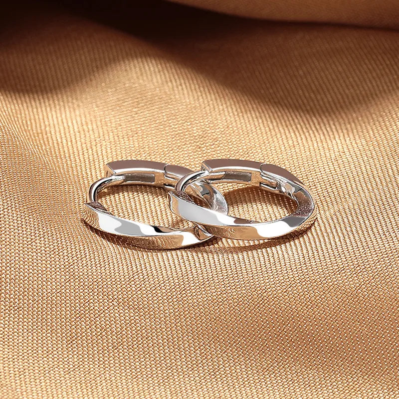 S925 Pure Silver Twisted Hoop Earrings Unisex High Fashion Elegant Design Trendy Men's Ear Jewelry Simple Minimalist Style - Platinum / 925 Silver