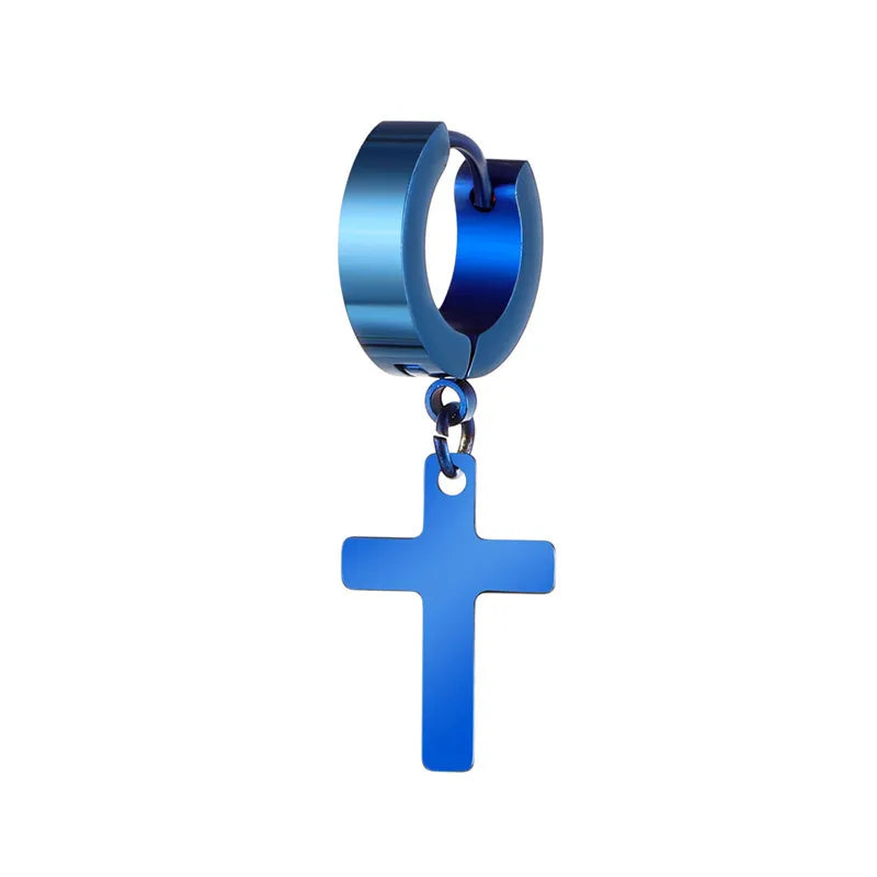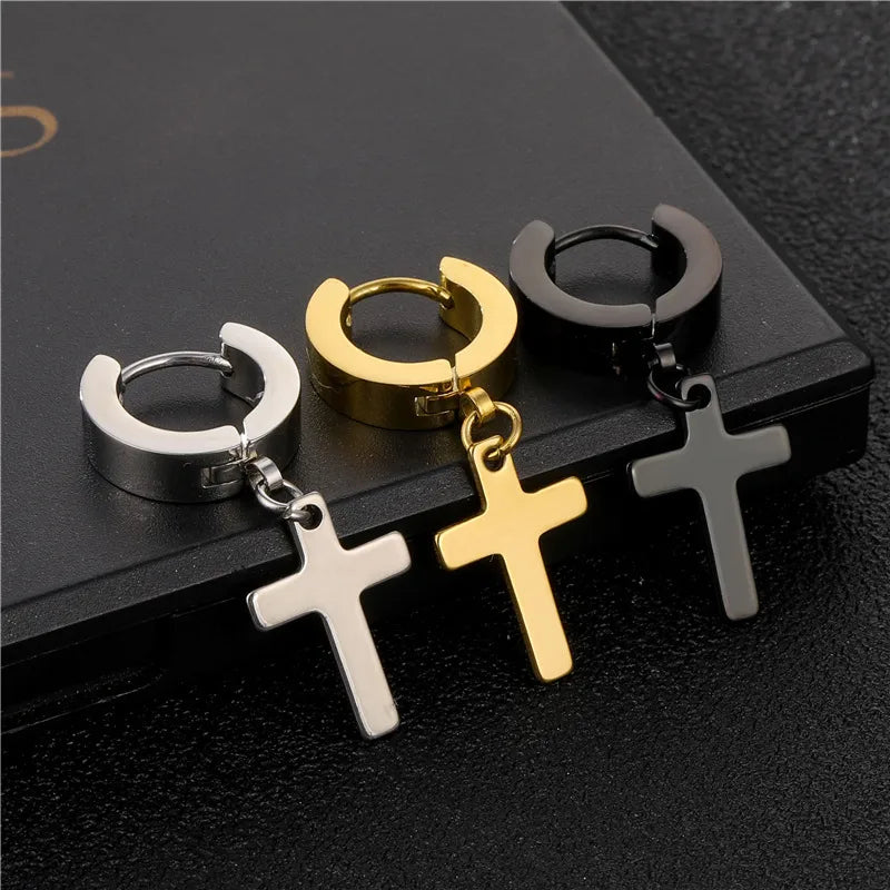 simple style cross titanium steel drop earrings 1 piece - Black (Single)