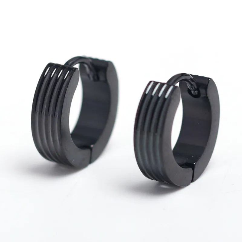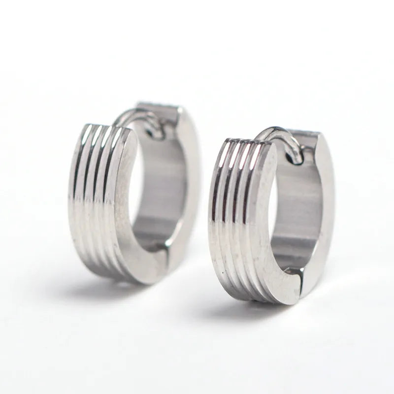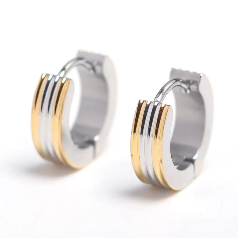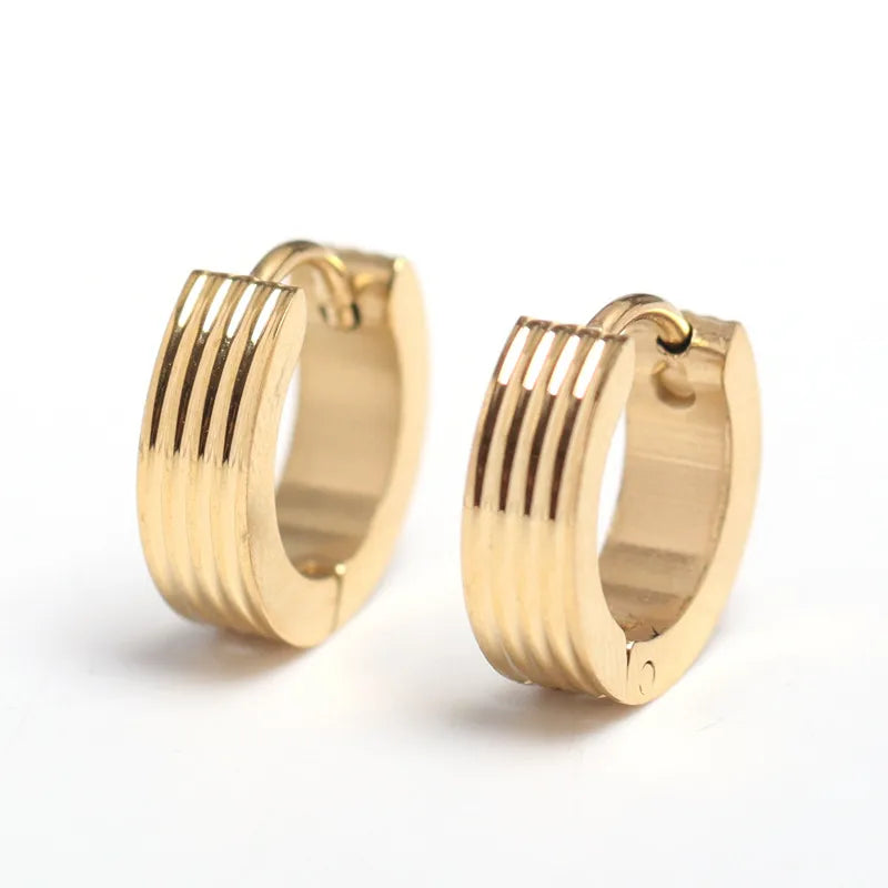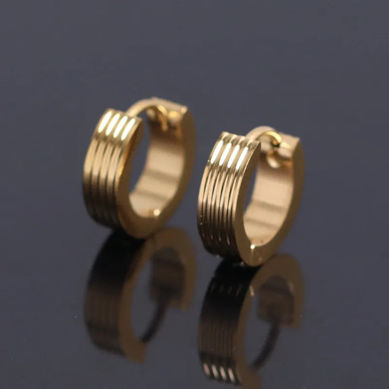 Stainless Steel Wide Rope Texture Earrings Trendy Personality Jewelry Accessories Geometric Pattern Round Electroplated Finish - Gold (One Piece)