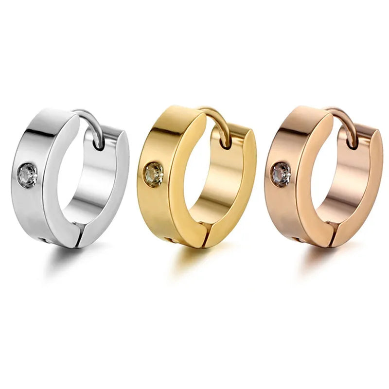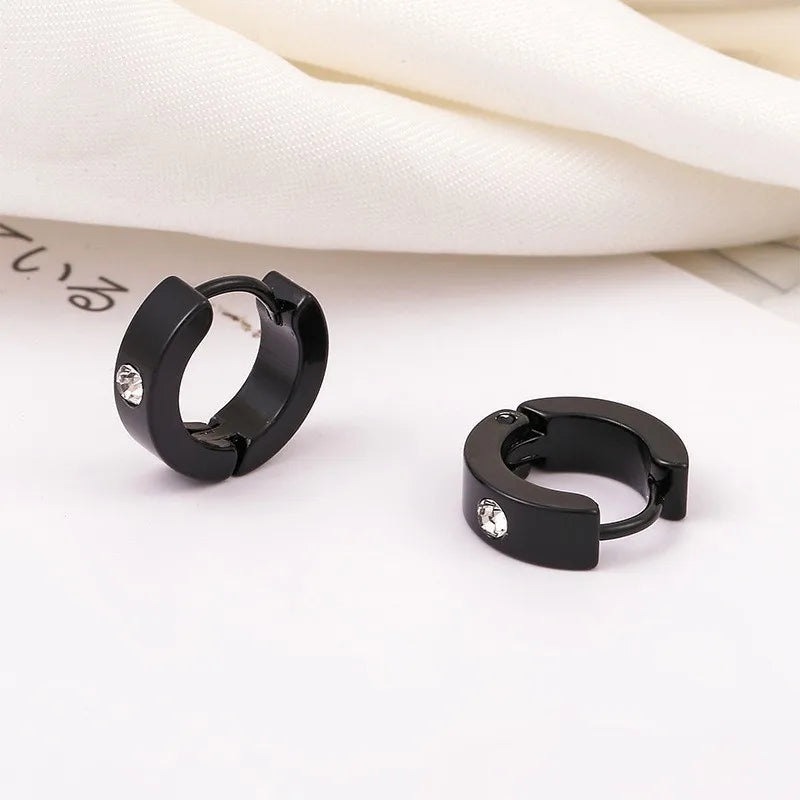 Titanium Steel Diamond Embedded Earrings Simple Personality Men's Style Fashionable Trendy Hoop Earrings Unisex Jewelry
