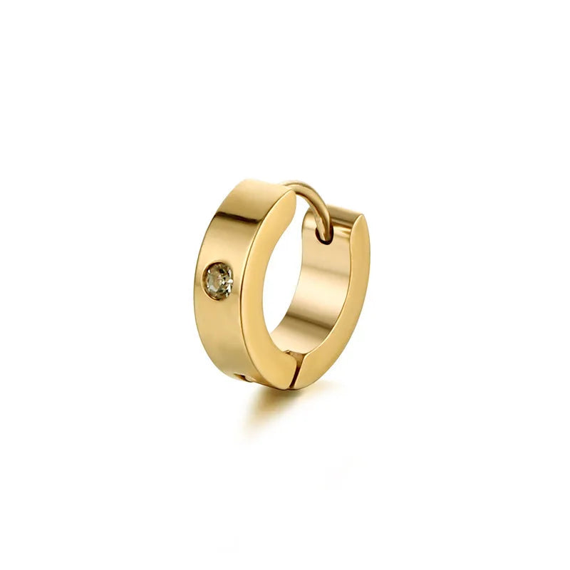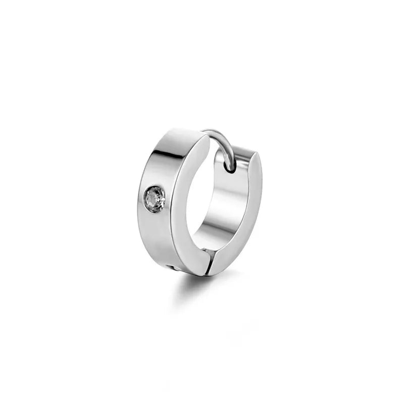 Titanium Steel Diamond Embedded Earrings Simple Personality Men's Style Fashionable Trendy Hoop Earrings Unisex Jewelry - Steel Color Ear Cuff with One Diamond