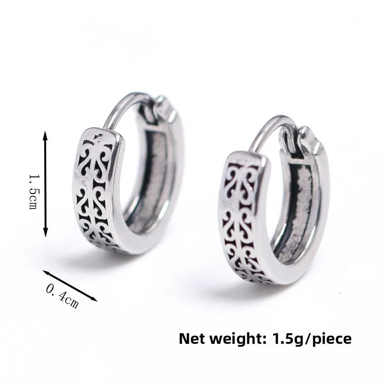 Trendy Geometric Patterned Stainless Steel Men's Pierced Earrings Single Ear Cuff Personalized Round Crafted Fashion Jewelry