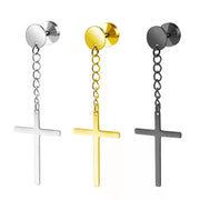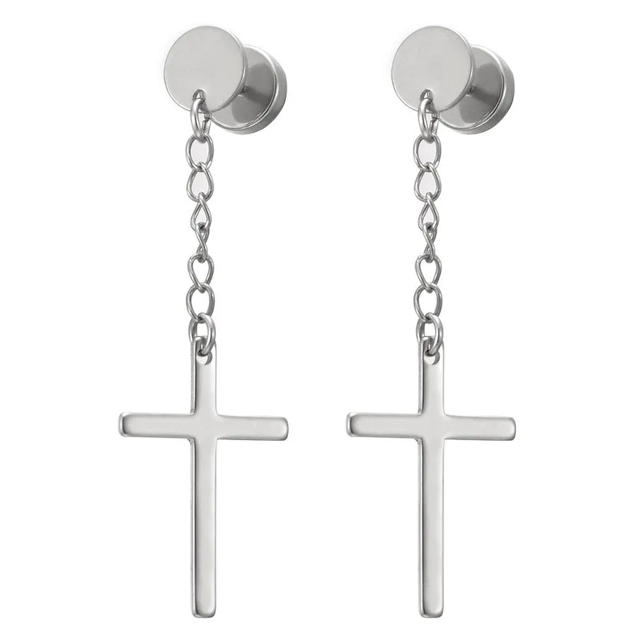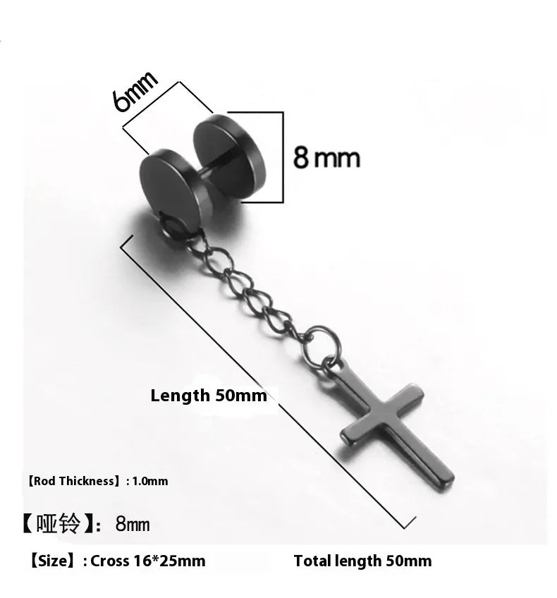 Trendy New Style Dumbbell Cross Pendant Personality Stud Earrings Hip Hop Fashion Unisex Stainless Steel Geometric Ear Jewelry - Black