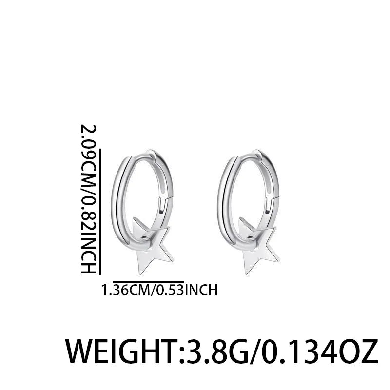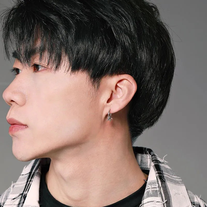 Trendy Street Dance Men's Earrings Cross Hip Hop Minimalist Style Geometric Pattern Copper Jewelry Ear Cuff Fashion Accessories - X098-A( Silver Star Pendant)