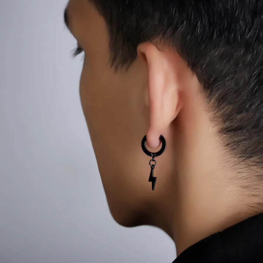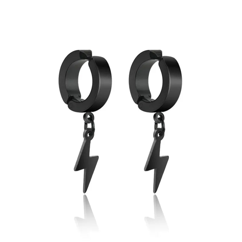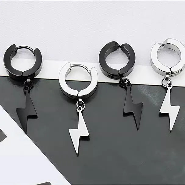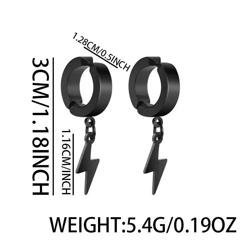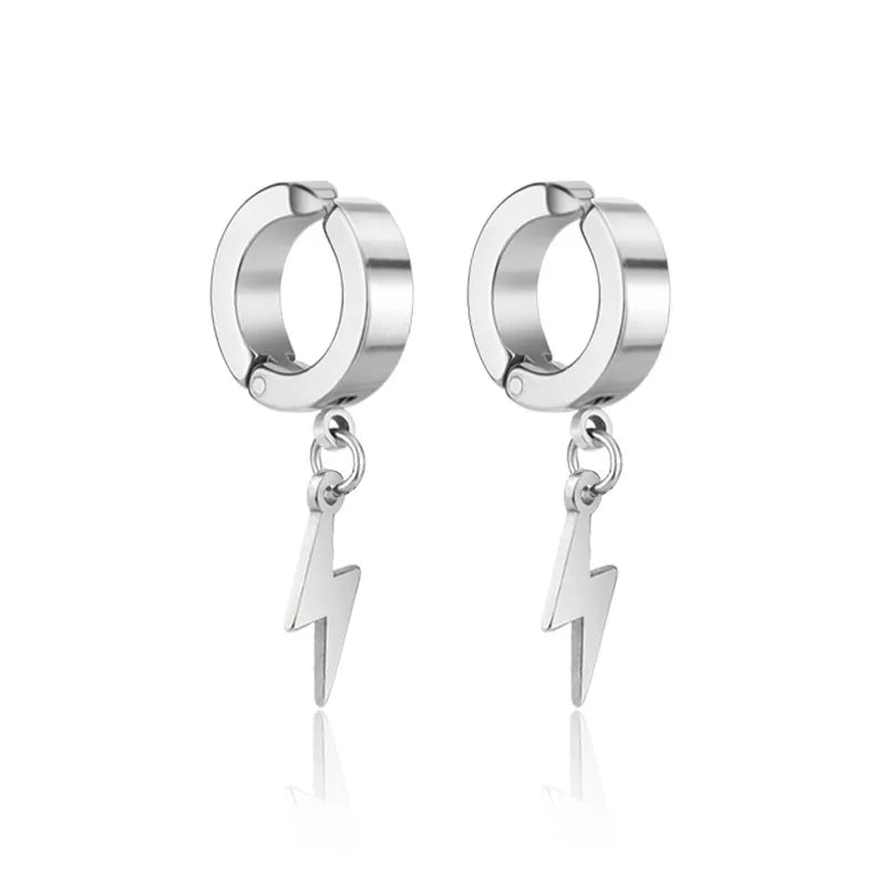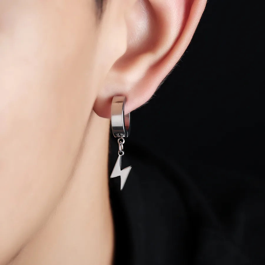 Trendy Titanium Steel Ear Cuffs Unisex Non-Fading Fashionable Geometric Design Gift Jewelry For Men And Women Without Piercing - X267-A (Silver Lightning Ear Clips) Pair / Regular