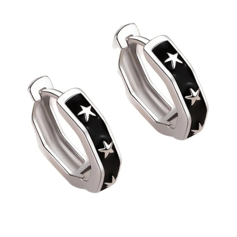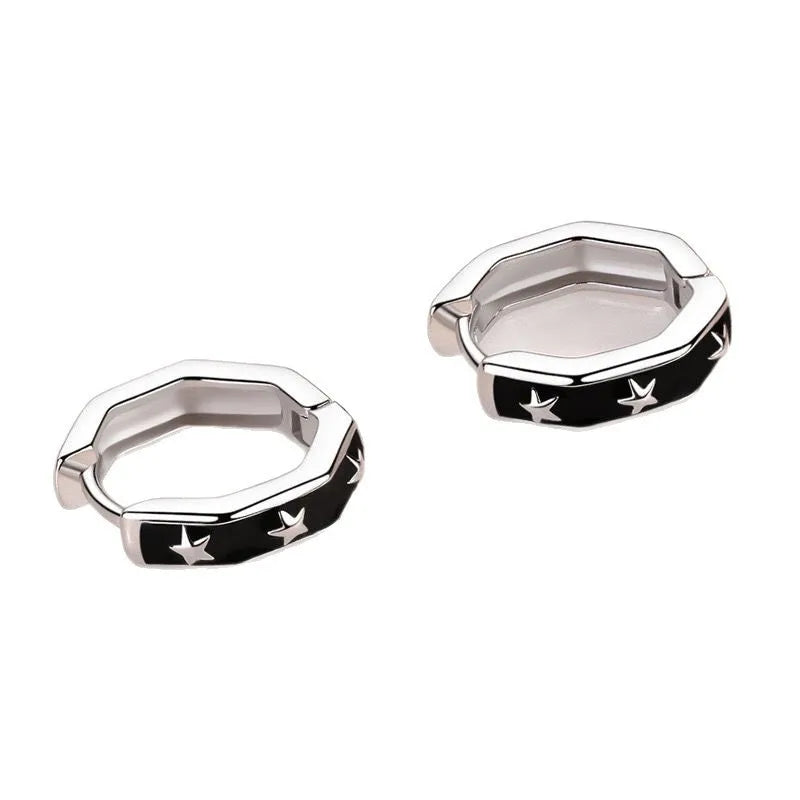 Unisex Punk Silver Plated Earrings Simple Versatile American Retro Style Geometric Pattern Copper Jewelry Accessory - One Pair Price
