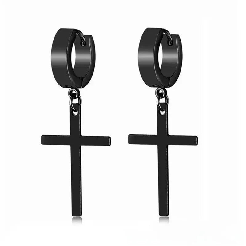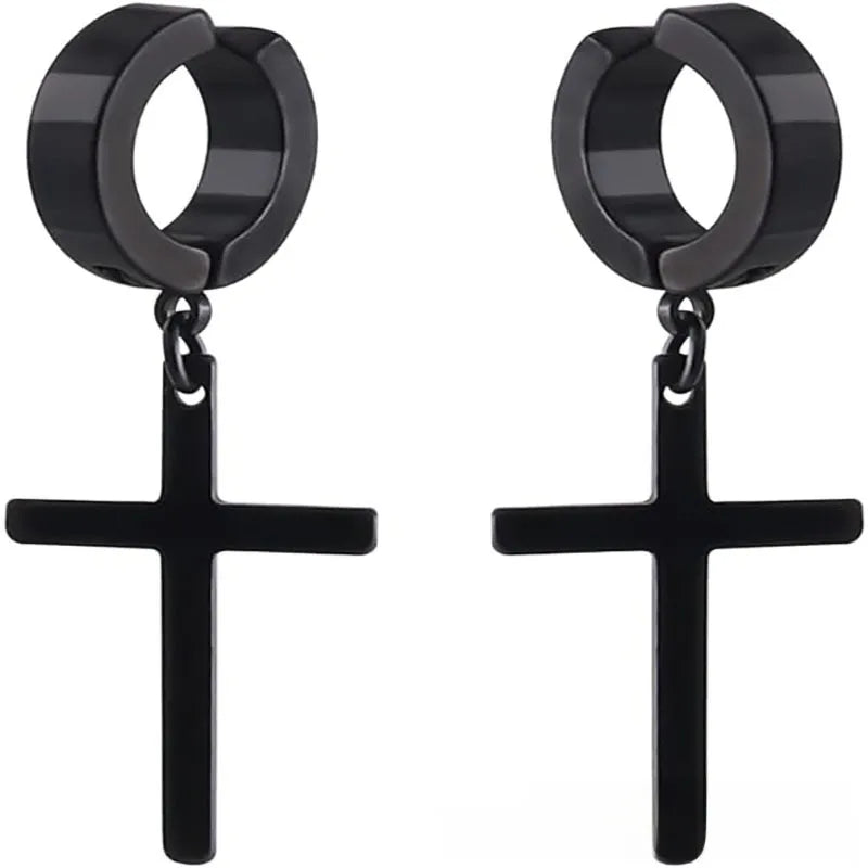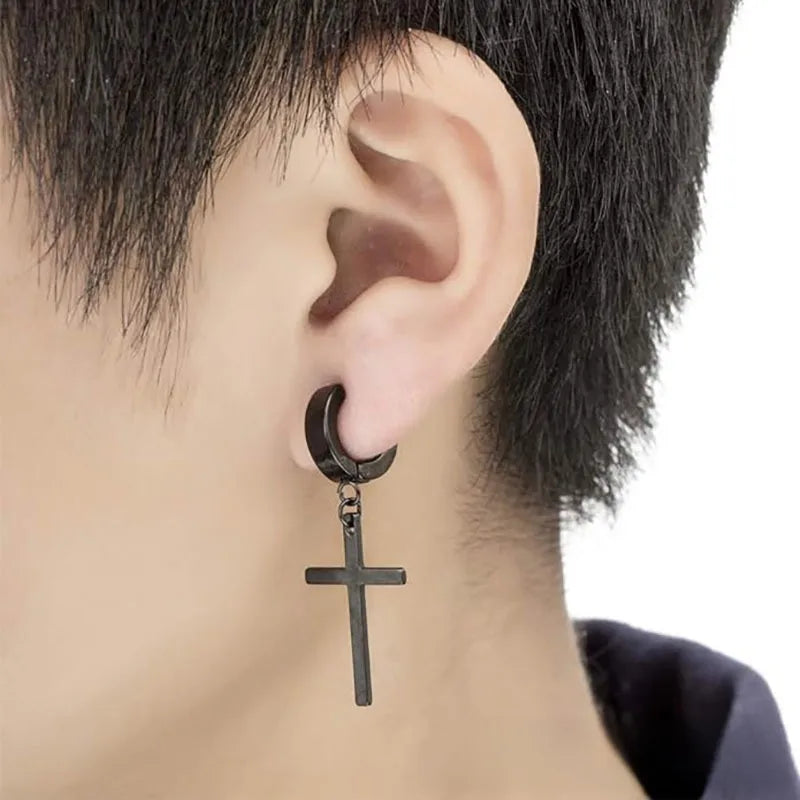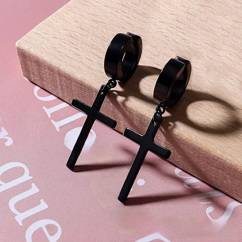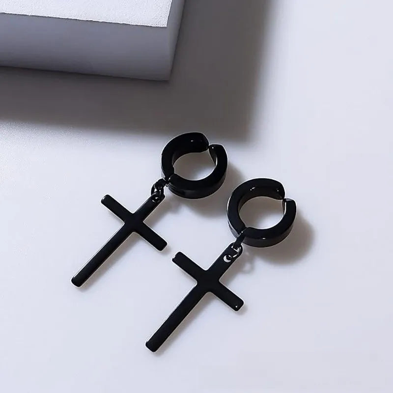 Unisex Punk Stainless Steel Lightning Hole Earrings Cross Star Hole Piercing Earrings Simple Style Geometric Pattern Jewelry - Earrings Steel Color