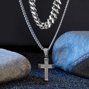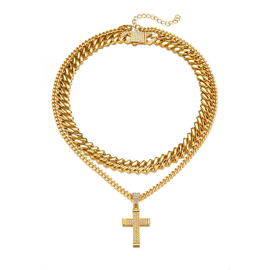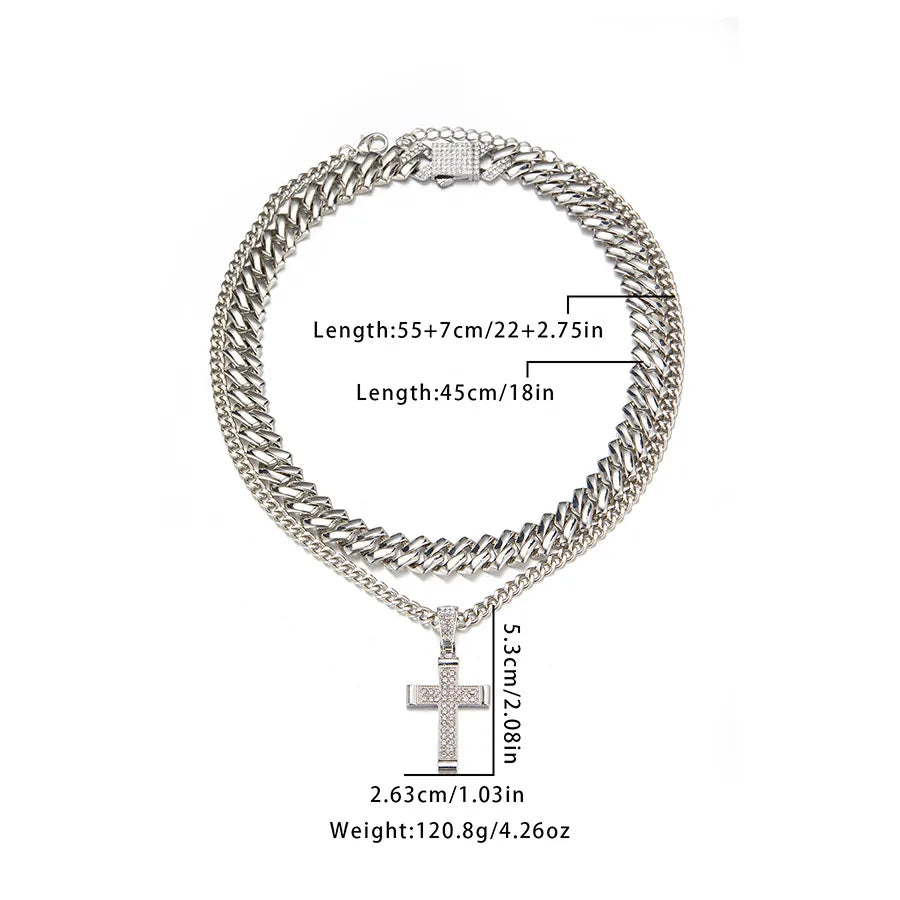 Retro Punk Cross Alloy Inlay Zircon Men's Pendant Necklace Men Layered Necklaces