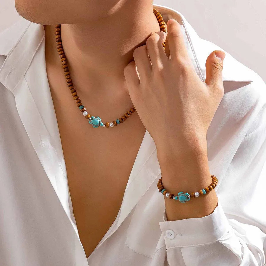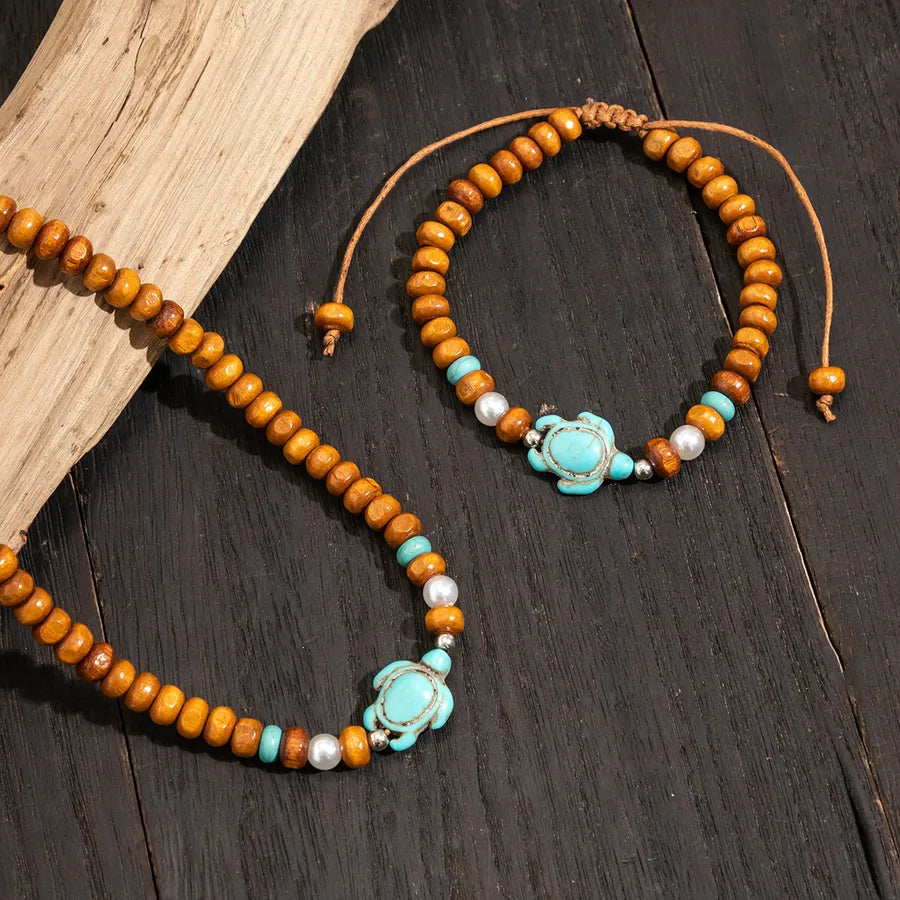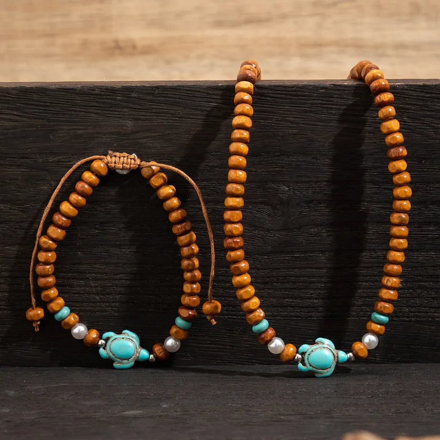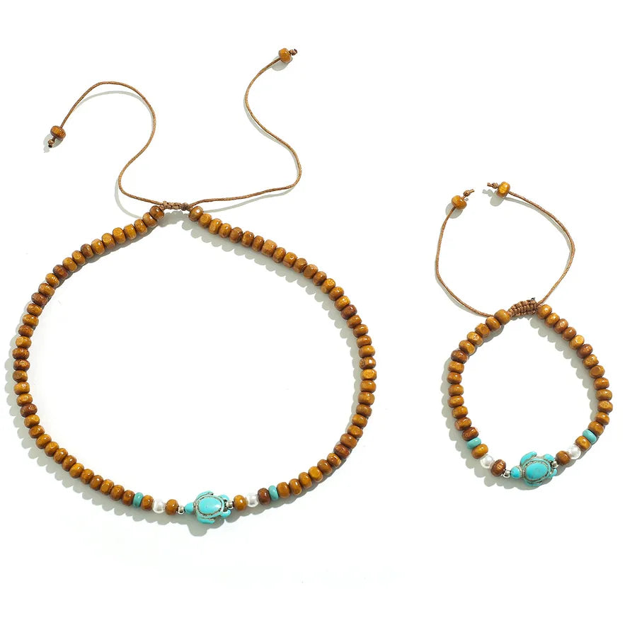 classic style round arylic wood men's bracelets necklace - Brown 04498