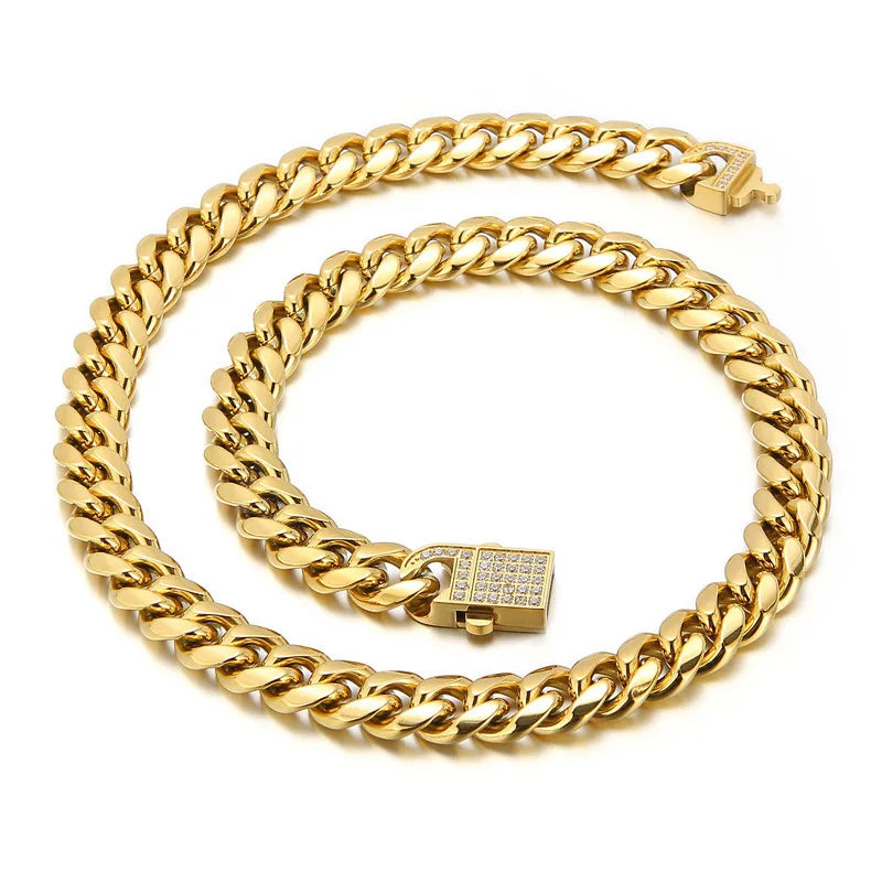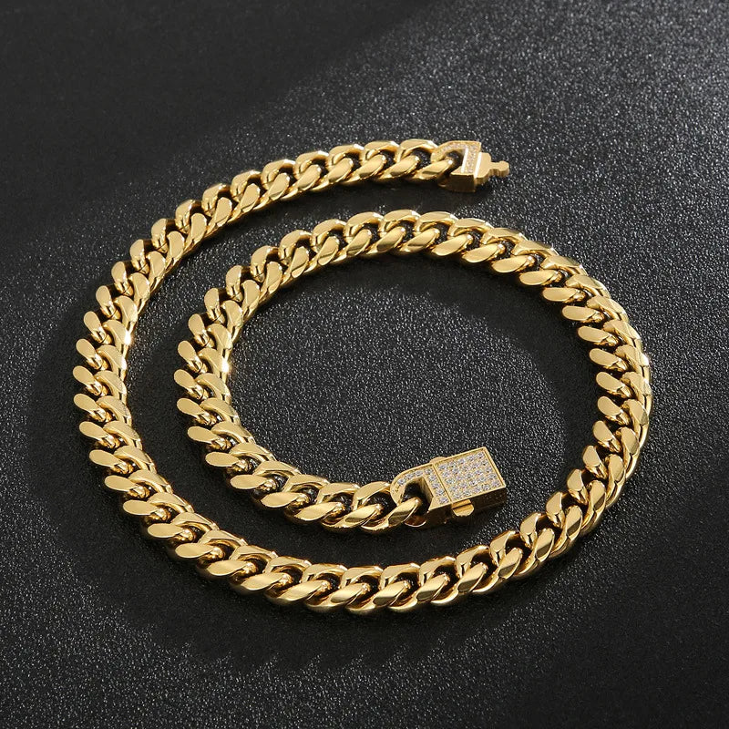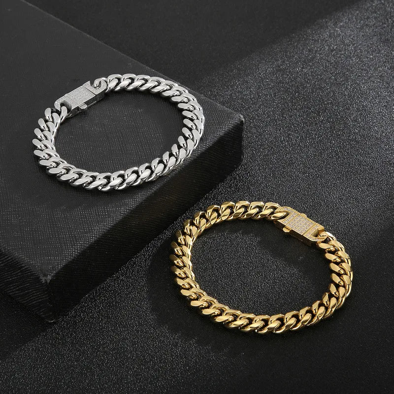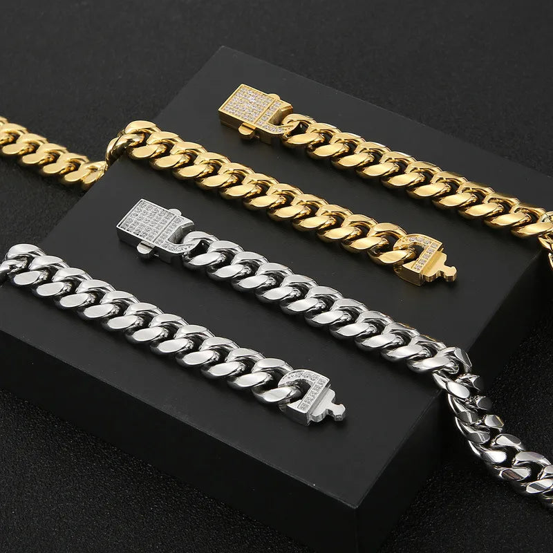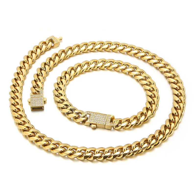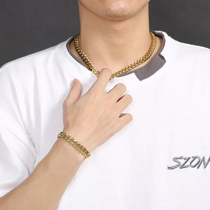 Hip-Hop Retro Geometric Solid Color Titanium Steel Plating Inlay Zircon 18K Gold Plated Men's Bracelets Necklace - Gold Bracelet Kb149764-KFC