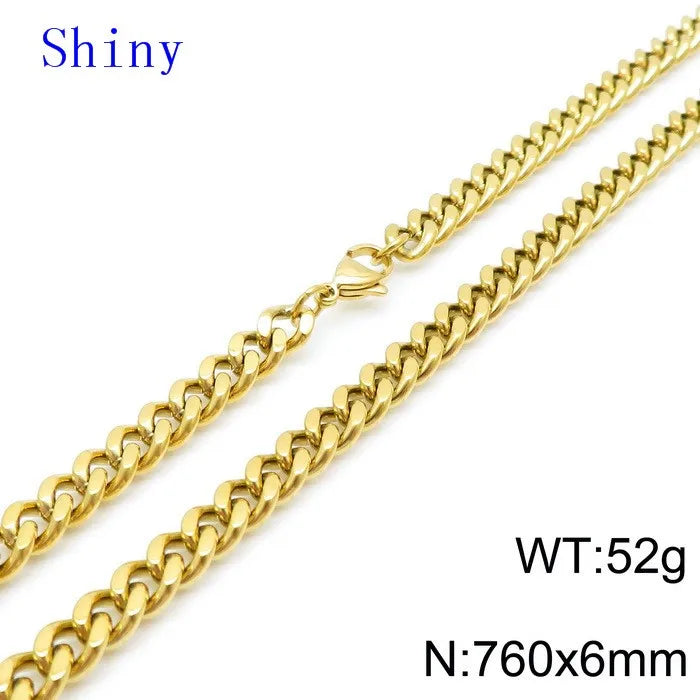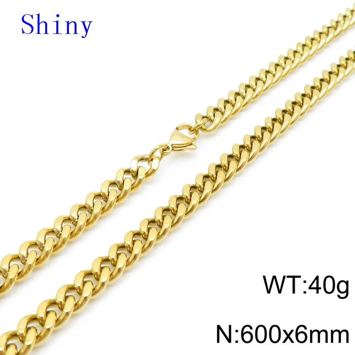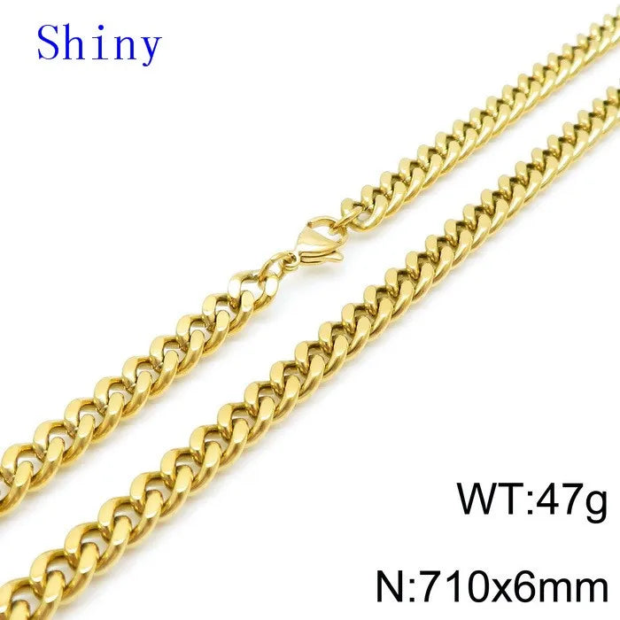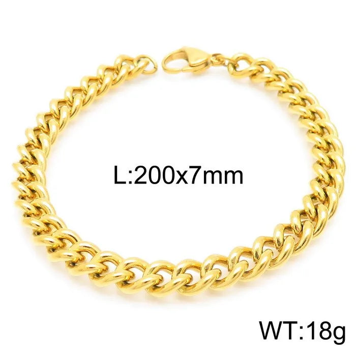 Hip-Hop Retro Solid Color Titanium Steel Chain 18K Gold Plated Men's Bracelets Necklace
