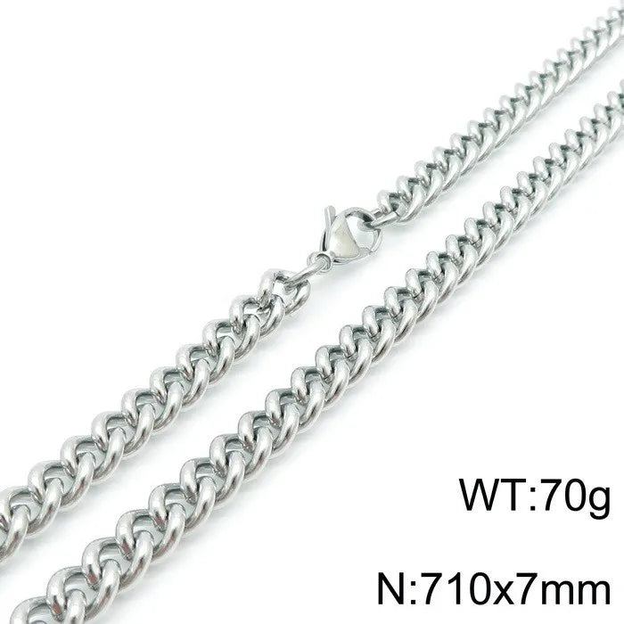 Hip-Hop Retro Solid Color Titanium Steel Chain 18K Gold Plated Men's Bracelets Necklace - Gold / 71cm