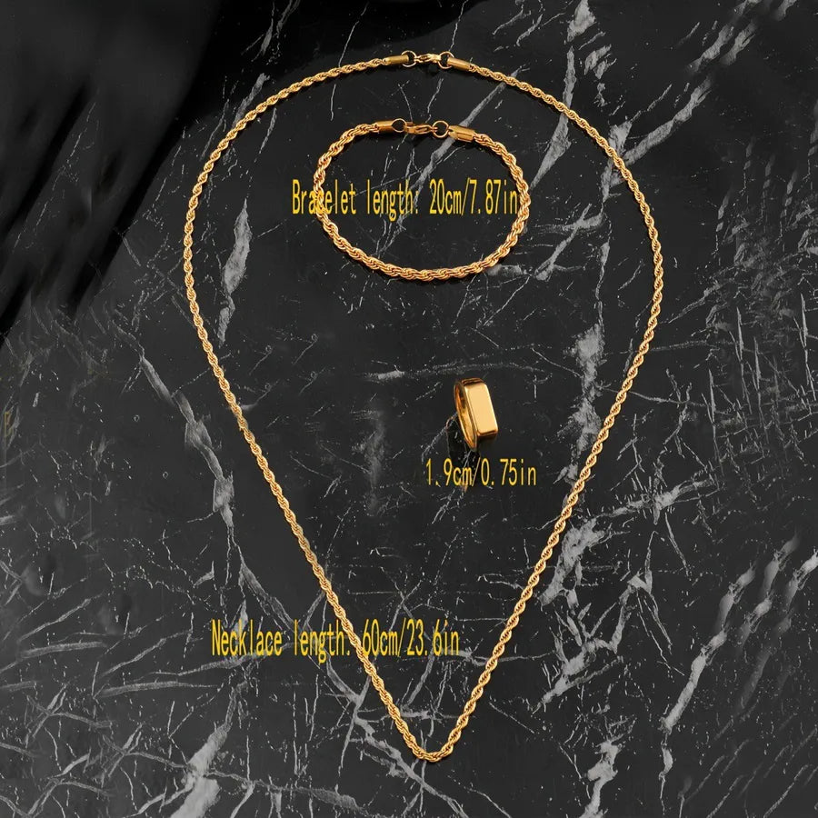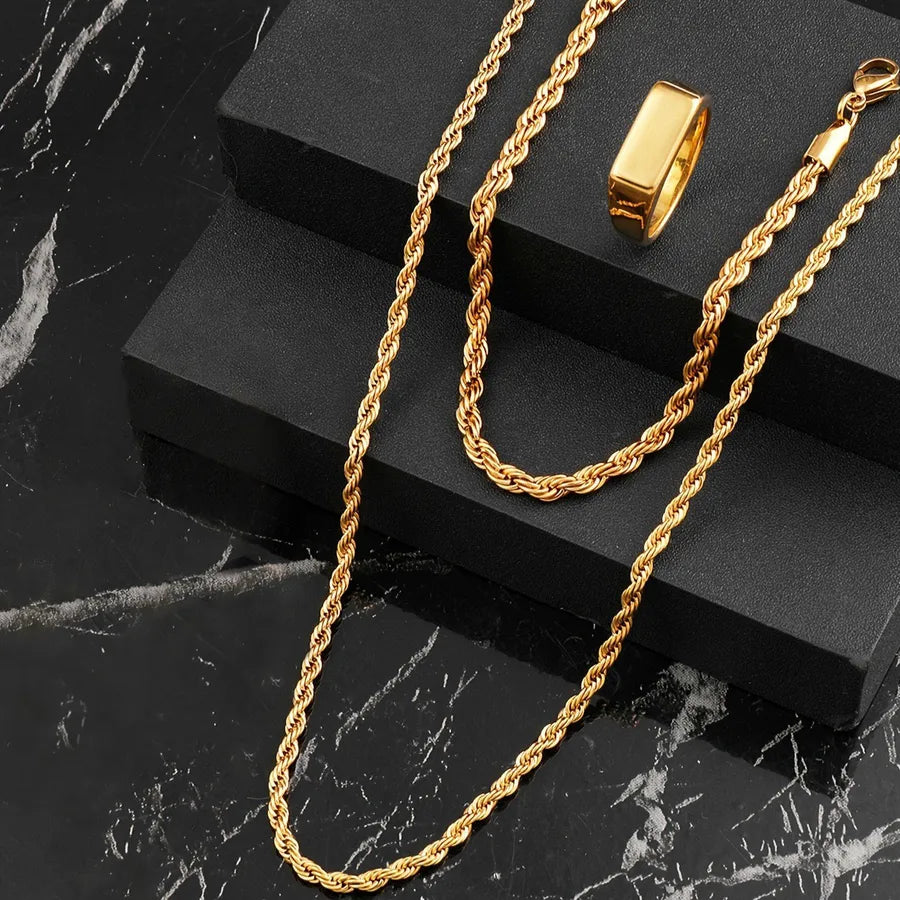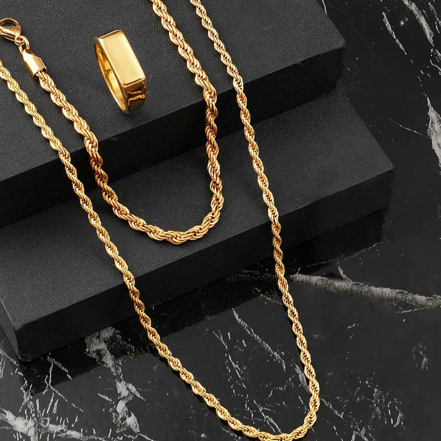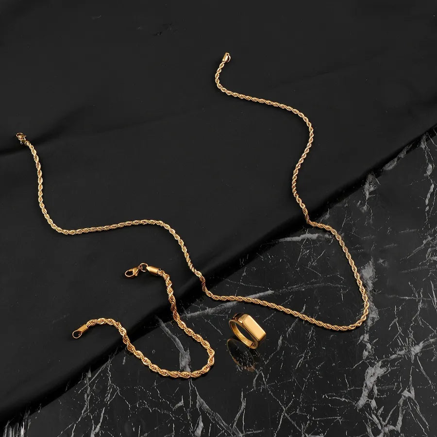 Stainless Steel Necklace Casting Geometric Glossy Ring Women's Light Luxury Non-Fading Titanium Steel Jewelry Suit - Gold Three-Piece Set / Ring-No. 9