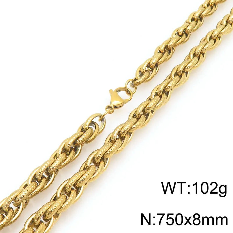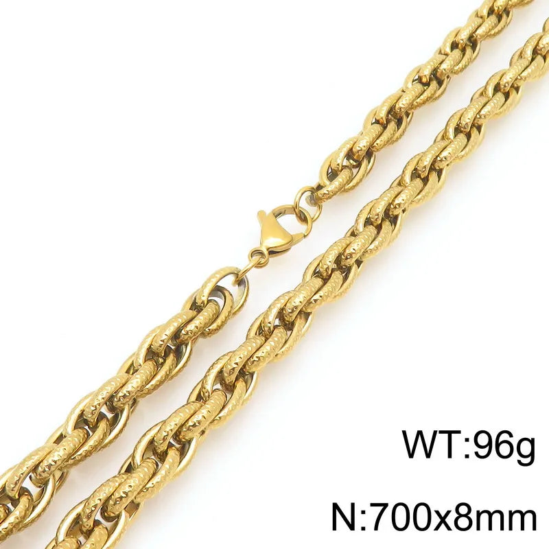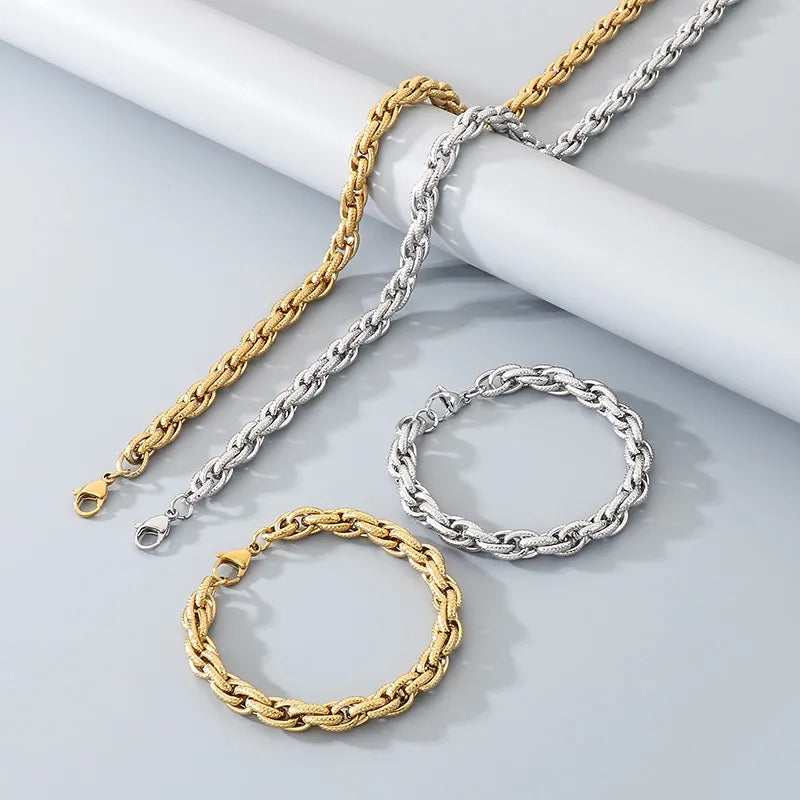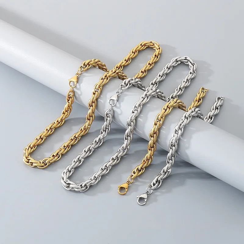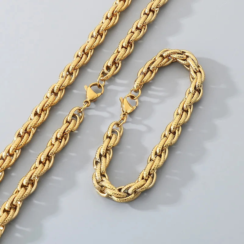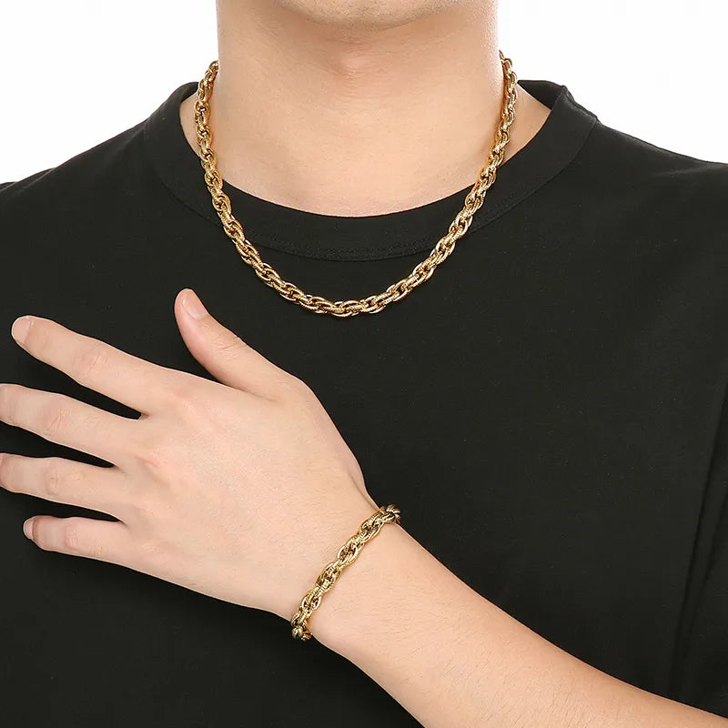 Vintage Style Simple Style Geometric 304 Stainless Steel 18K Gold Plated Unisex Bracelets Necklace Men Necklace Sets - 180*8mm / Gold