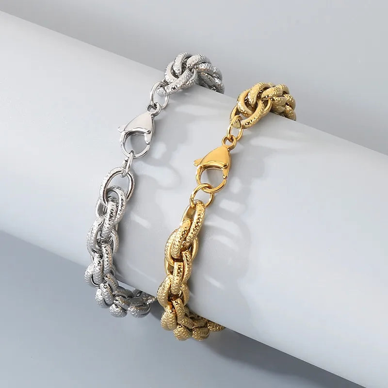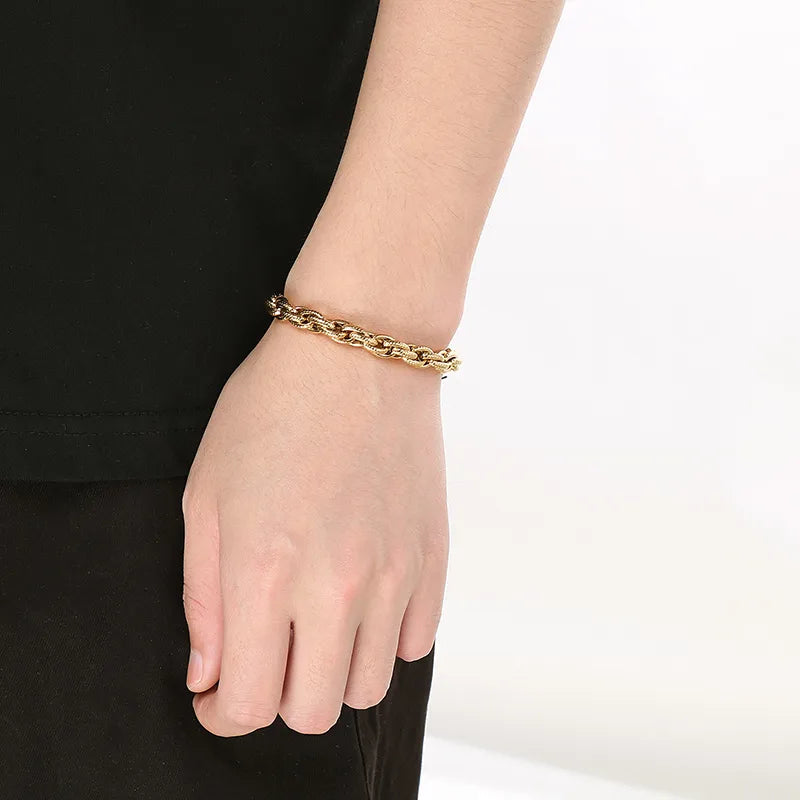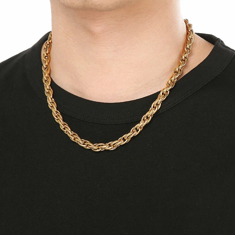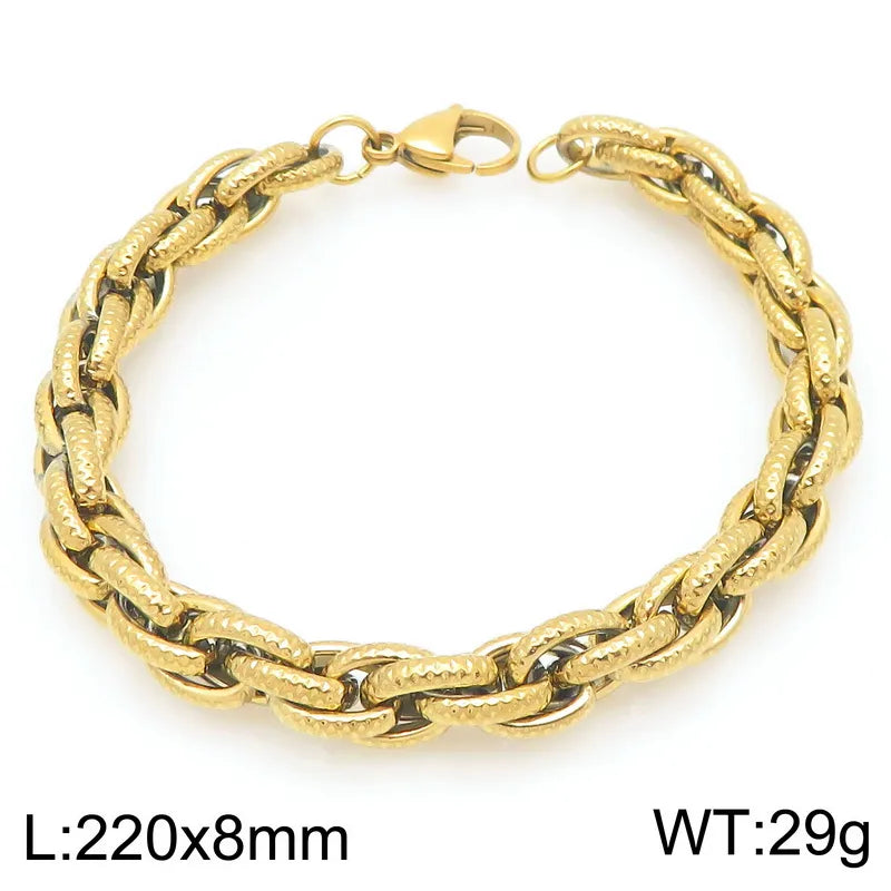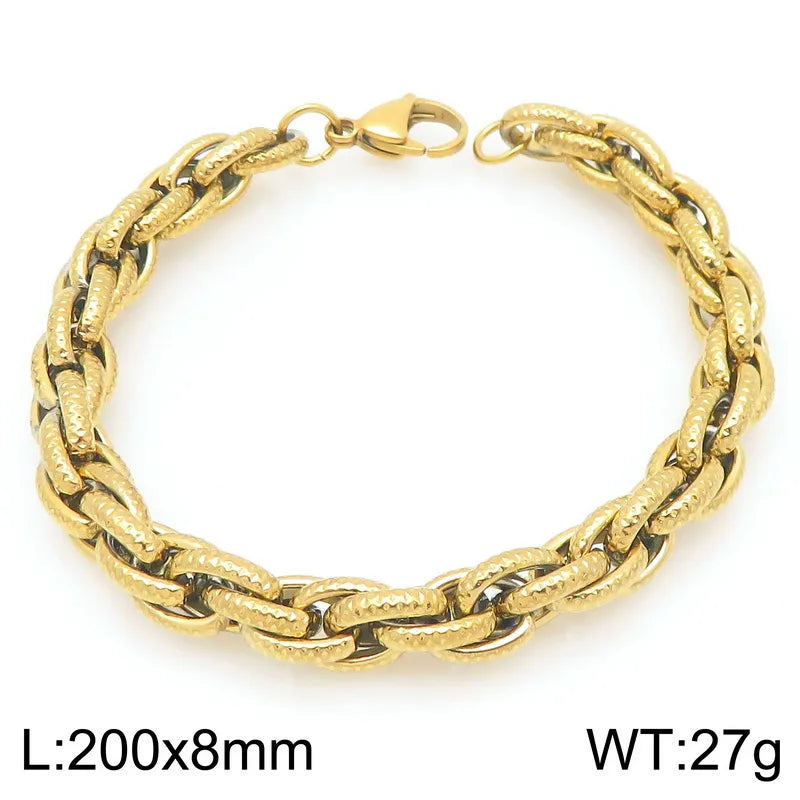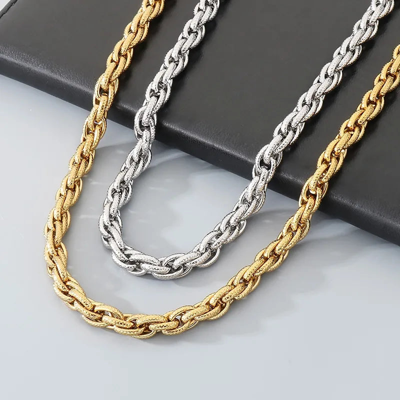 Vintage Style Simple Style Geometric 304 Stainless Steel 18K Gold Plated Unisex Bracelets Necklace Men Necklace Sets - 180*8mm / Gold