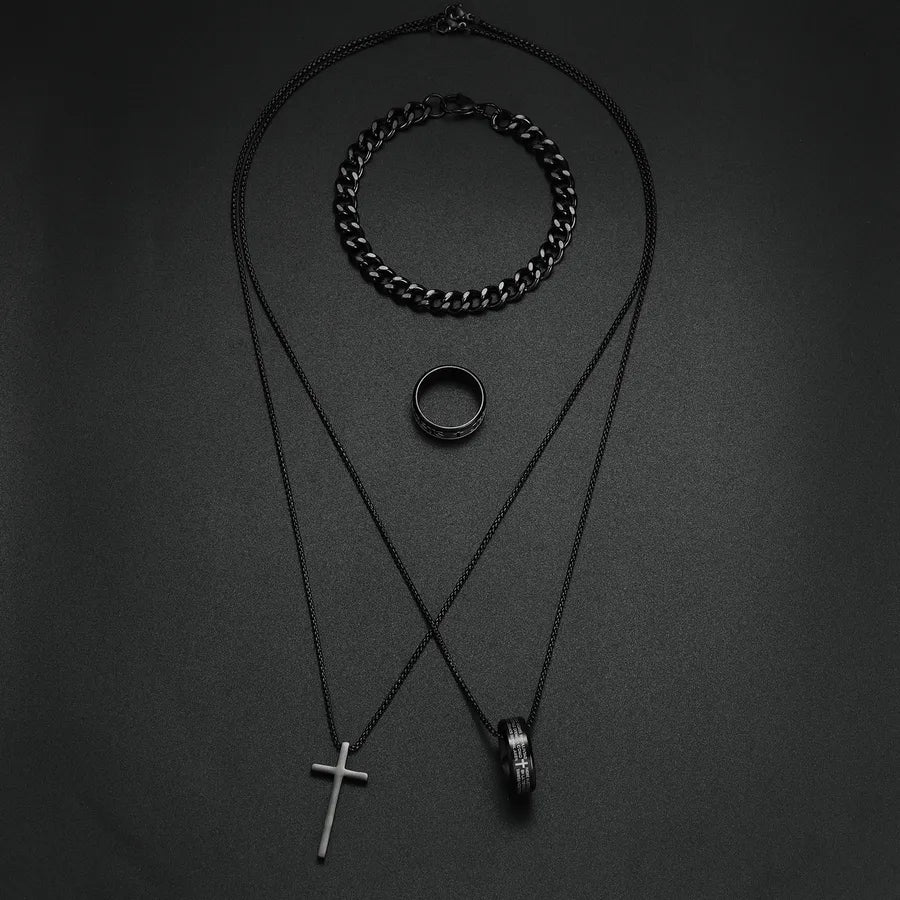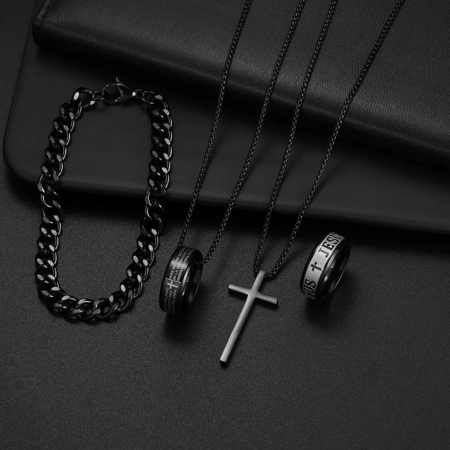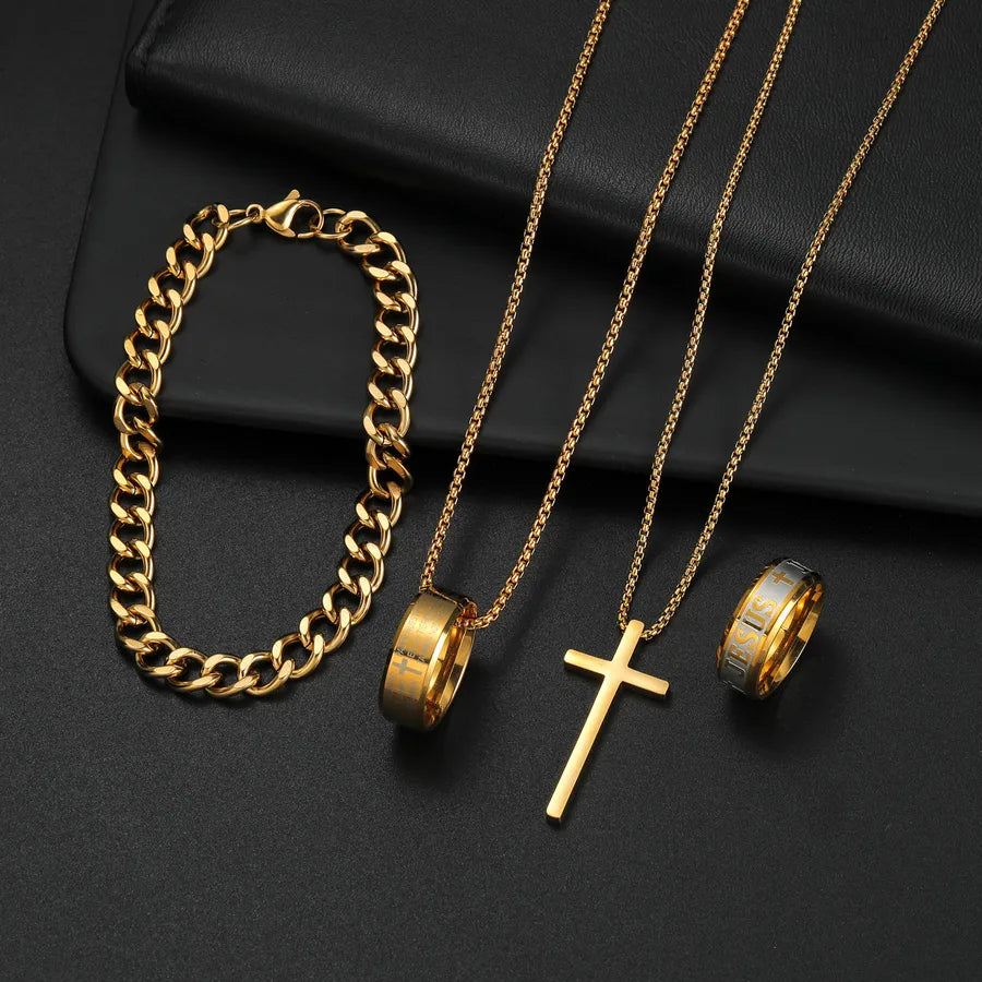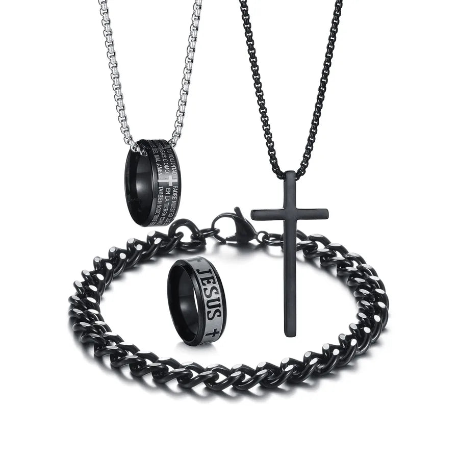 Wholesale Jewelry Hip-Hop Retro Letter 304 Stainless Steel Polishing Jewelry Set