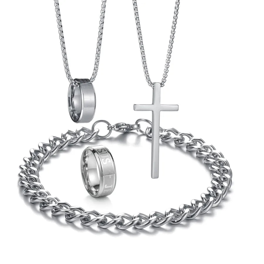 Wholesale Jewelry Hip-Hop Retro Letter 304 Stainless Steel Polishing Jewelry Set - Adult One Size / Silver