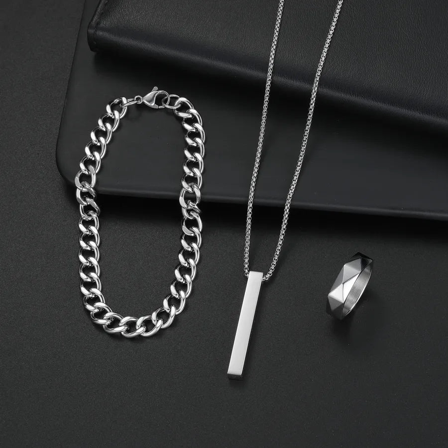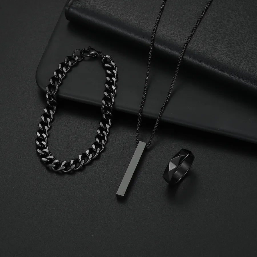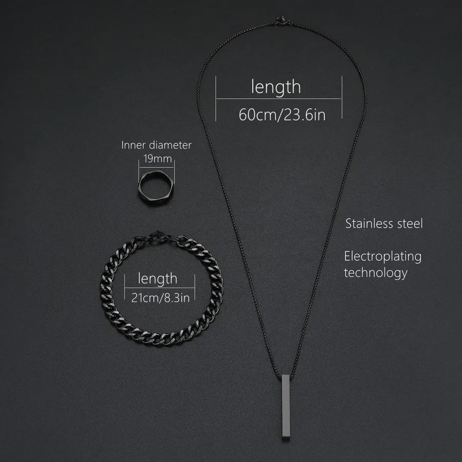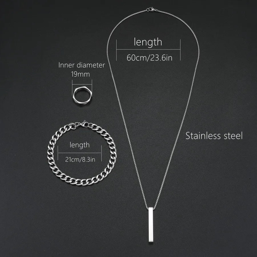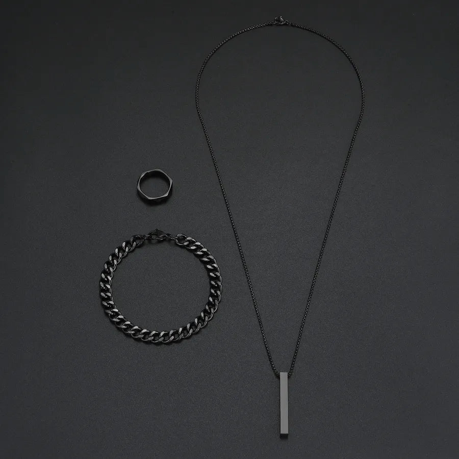 Wholesale Jewelry Hip-Hop Retro Solid Color 304 Stainless Steel Black Plated Jewelry Set - Adult One Size / Silver