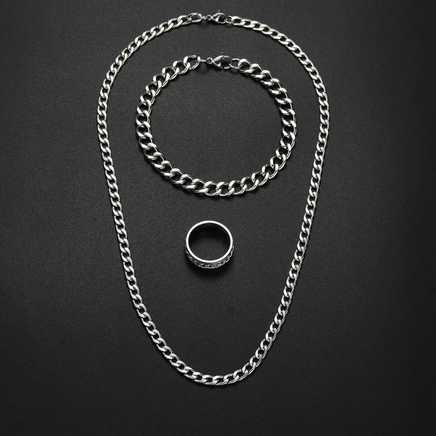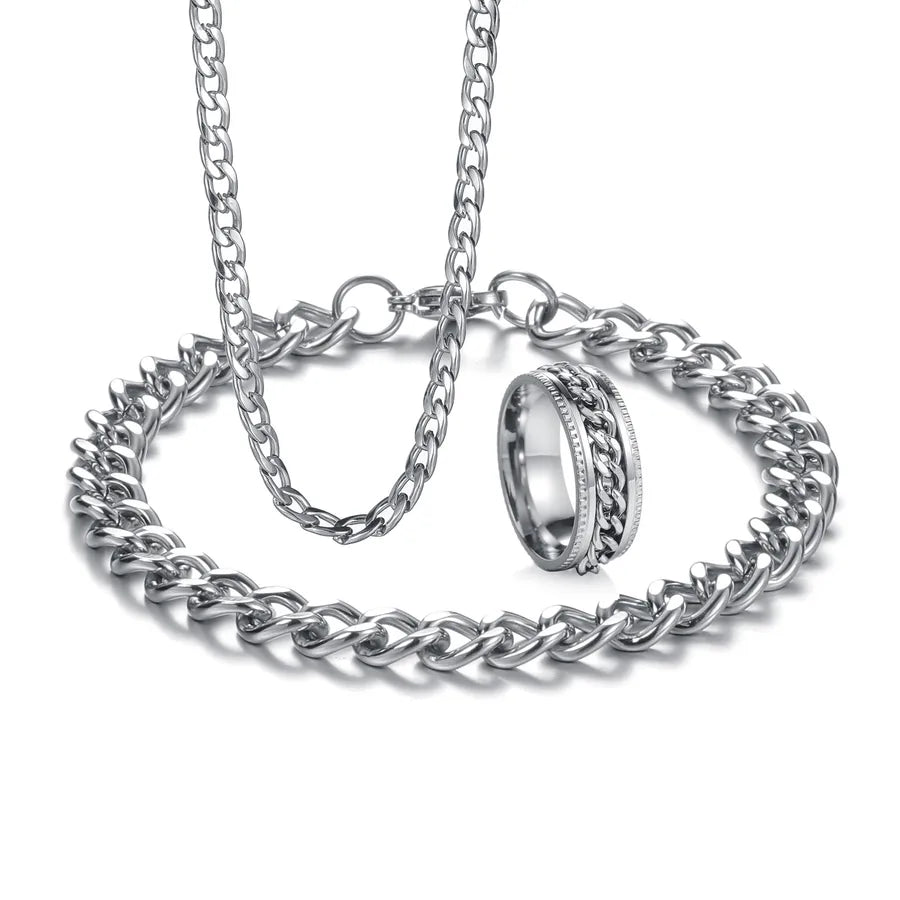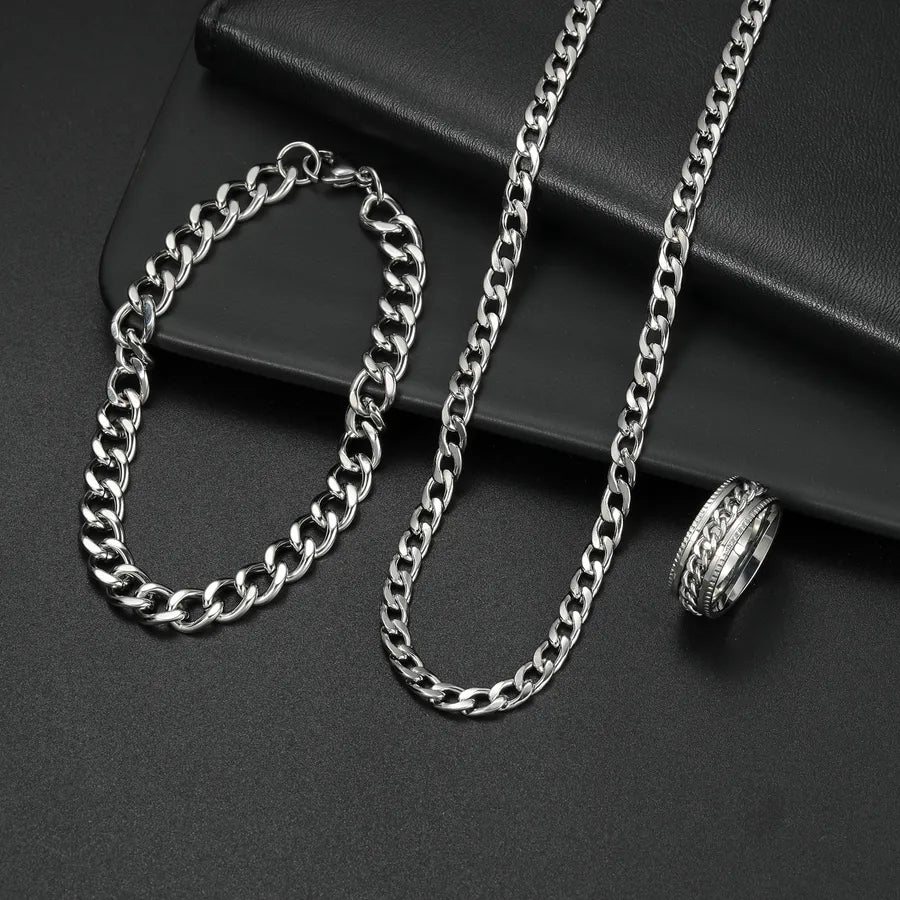 Wholesale Jewelry Hip-Hop Retro Solid Color 304 Stainless Steel Jewelry Set - Adult One Size / Silver