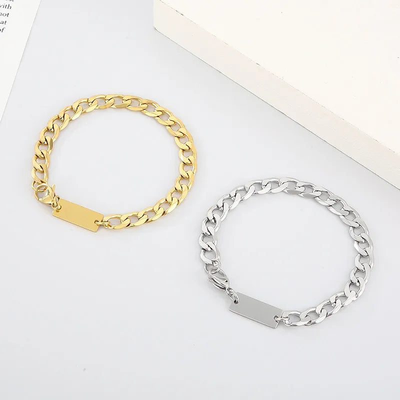 Wholesale Jewelry Simple Style Geometric Stainless Steel 18K Gold Plated Bracelets Necklace - Bracelets / Steel Color